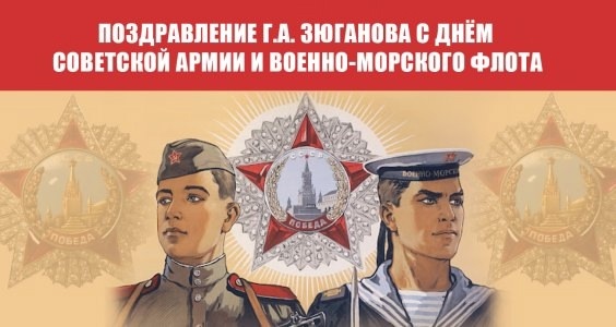 Дорогие товарищи! Друзья и соратники! В год 80-летия Великой Победы над фашизмом с особой гордостью поздравляю вас с Днём Советской Армии и Военно-Морского Флота! Непобедимая и легендарная Рабоче-Крестьянская Красная Армия родилась благодаря гению Владимира Ленина и героям борьбы за социализм Иосифу Сталину и Михаилу Фрунзе, Семёну Будённому и Клименту Ворошилову, Василию Чапаеву и Николаю Щорсу. Важен был вклад в её создание Алексея Брусилова, Михаила Бонч-Бруевича, Бориса Шапошникова, Дмитрия Карбышева и других военачальников русской армии. Разгромив гитлеровский фашизм и японский милитаризм, наши отцы и деды явили миру могучую силу социализма и нерушимое единство советского народа. Коммунисты и комсомольцы, сыны и дочери нашей Отчизны шли в бой, не щадя себя. Символом величия духа стало имя Александра Матросова, закрывшего собою амбразуру вражеского дзота. Беспримерное мужество на фронте и в тылу проявили миллионы людей. Будем же помнить Дом сержанта Якова Павлова в Сталинграде. Ука