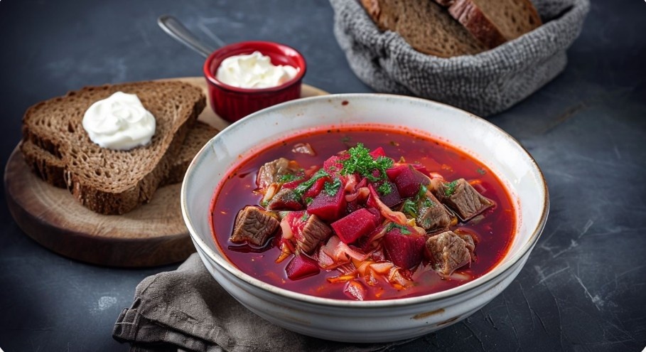 Этот рецепт — основа основ, передающая настоящий вкус борща. На приготовление потребуется время, но результат того стоит! Ингредиенты (на 6-8 порций): Для бульона: Для борща: Приготовление: 1. Готовим бульон: Мясо промойте, положите в большую кастрюлю и залейте холодной водой. Доведите до кипения, снимите пену. Уменьшите огонь, добавьте целую очищенную луковицу, морковь, лавровый лист и перец горошком. Варите бульон на медленном огне 2-3 часа (для говядины) или 1.5-2 часа (для свинины), пока мясо не станет мягким и легко отходить от костей. Выньте мясо из бульона и остудите. Бульон процедите и верните в кастрюлю. Мясо нарежьте кубиками или полосками и отложите. Чем дольше варится бульон, тем насыщеннее будет вкус борща. 2. Подготавливаем овощи: Свеклу очистите и нарежьте соломкой или натрите на крупной терке. Сбрызните уксусом (или лимонным соком), перемешайте и оставьте на 15-20 минут (это поможет сохранить яркий цвет свеклы при варке) .Картофель очистите и нарежьте кубиками. Капусту
