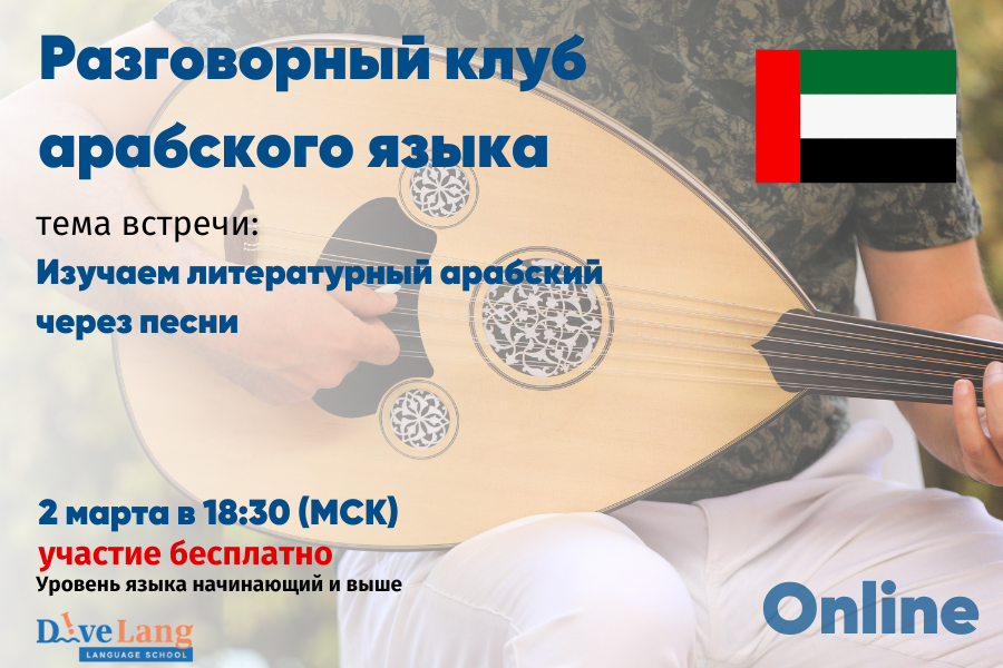 Приглашаем всех желающих принять участие в разговорном онлайн-клубе по арабскому языку! Тема нашей встречи: Изучаем литературный арабский через песни. نَتَعَلَّمُ العَرَبِيَّةَ الفُصحَى مِن خِلَالِ الأَغَانِي Начало мероприятия: 02 марта 2025г. в 18:30 по МСК Для всех желающих - бесплатно! Записаться можно, оставив заявку на этой странице - https://clck.ru/3GZ69k Место проведения: платформа SKYPE (ссылка будет направлена на почту за день до мероприятия) Рекомендуемый уровень владения языком: А1 и выше