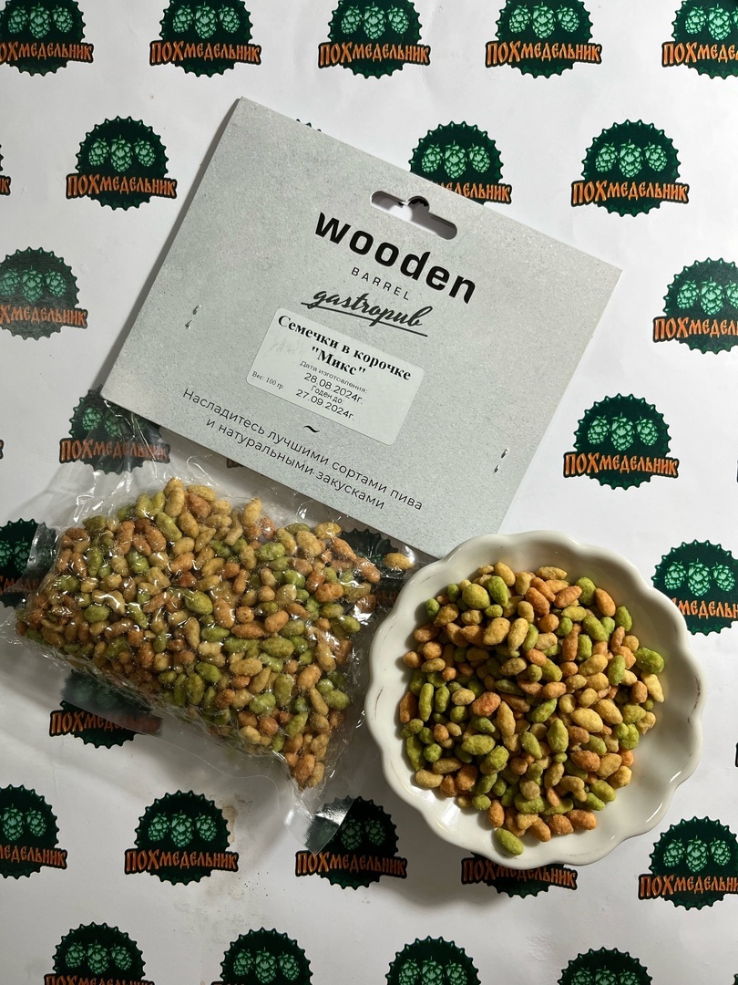 Статистика: семечки, топовая закуска от шефа, состав не указан. Вес: 100 гр. Дата изготовления: 28.08.2024 Изготовитель: Wooden Barrel Gastropub, Россия, Волгоградская область, г. Волжский По-братски: финальный пакетик от Wooden. Возможно они продолжат путь в мир закусок. А пока у меня микс. Это как The Best, собрали все вкусы семечек в корочке. Тут и бекон и васаби и сыр. Но начнем мы с того, что возьмем из холодильника бутылочку холодненького пивка, откроем и наполним бокал. Вот так. Теперь можно и взрезать пакетик. Да, кто следит за моим каналом знает, я уже писал обзоры на вкусы с беконом и васаби и мне понравилось. Само собой, тут те же семечки в панировке, только перемешаны 3 вкуса: сыр, васаби и бекон. Также вкусно и приятно. Отличная оригинальная закуска. Но есть нюанс. Васаби здесь жжет и хочется его все время запивать. Если вас это не пугает, то рекомендую посетить фирменный магазин Wooden Barrel в городе Волжский и купить себе такой пакетик. Оценка: 9/10