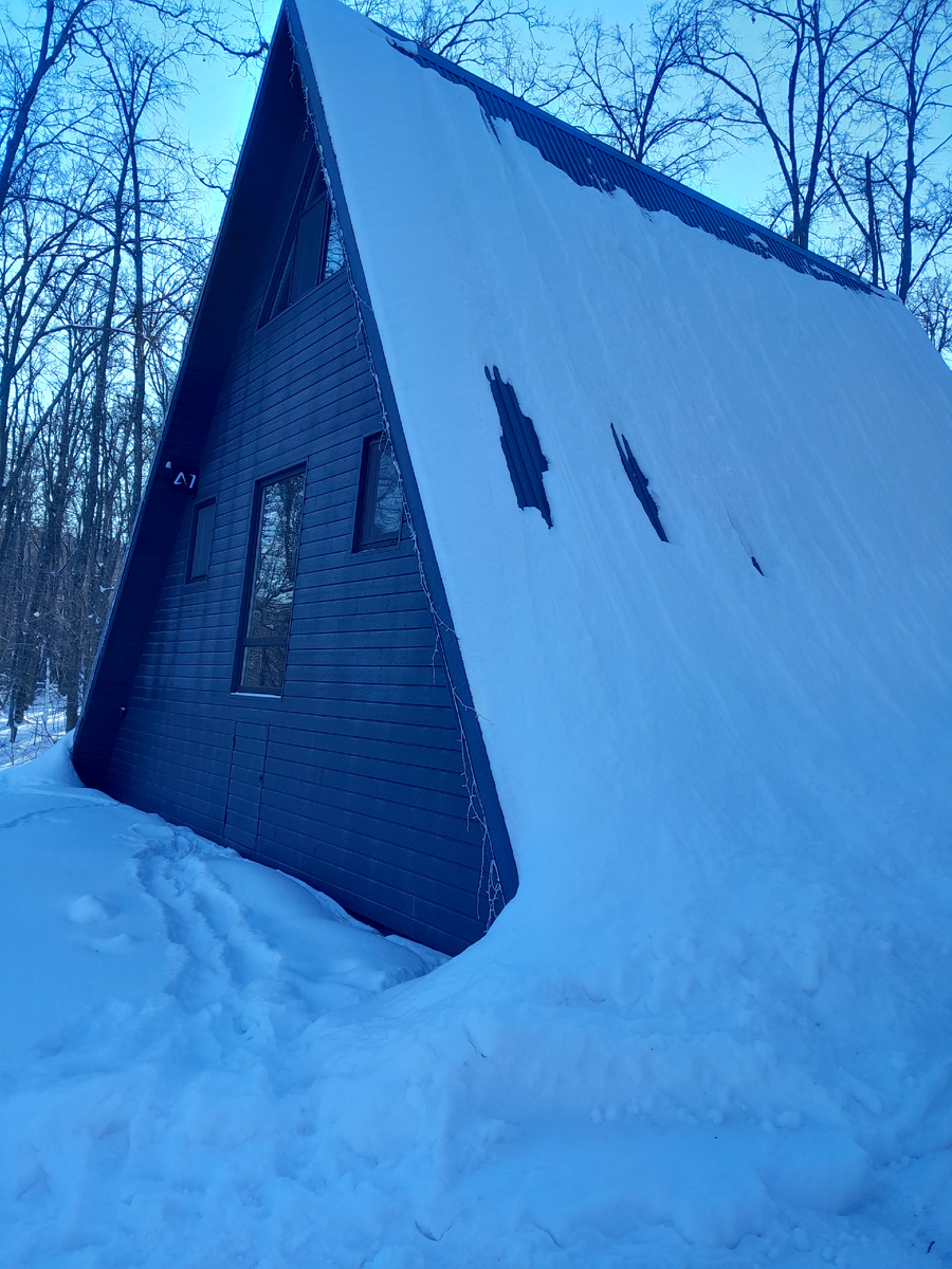 Ещё когда я искала домик на Новый год, первое, что мне выдал гугл по Саратову, был Глэмпинг Влес. Это несколько треугольных домиков типа "аффрейм" в лесу. Но новогодние праздники уже были заняты на тот момент, поэтому мы забронировали эти выходные)) Вообще я поняла, что хочу жить в частном доме, а не в квартире. Желательно в лесу с отрывом от любого городского шума) Но пока есть привязка к школе, то будут такие выезды в разные интересные места на выходные или отпуск. Дача у нас летняя, без воды и отопления в зимний период. Вот домик, который мы сняли: На первом этаже просторная гостиная с кухонным уголком, ванной и комнатой для дочек. Второй этаж - мансарда, где расположились мы с мужем и сыном. На улице летняя беседка, баня (при желании). Есть качели: И нам, и куклам тут очень нравится)) в доме очень уютно, тепло и пахнет деревом)) в нашей области глэмпинги получили широкое развитие, часто читаю в новостях об открытии новых. Жаль, что на улице очень холодно, поэтому долгих про