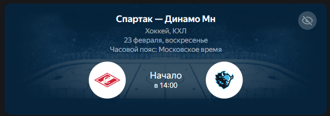 23 февраля в рамках регулярного чемпионата КХЛ сезона 2024/25 пройдёт встреча «Спартака» и «Динамо» Минск. Игра состоится на льду арены «Мегаспорт» в Москве, а старт назначен на 14:00 по московскому времени. Как смотреть онлайн