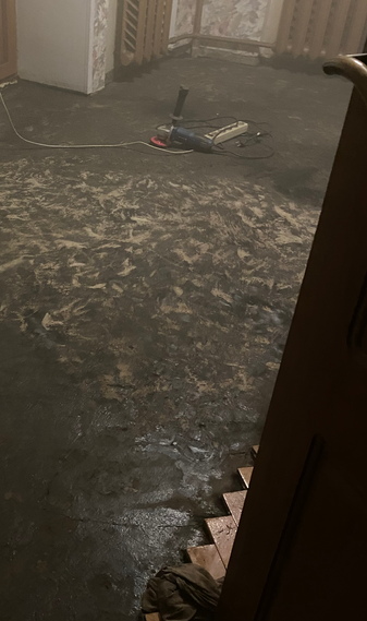 Во второй комнате (спустя 4 месяца после первой) я скребком счистила большие наплывы битума - мне понадобился вечер, скребла я не торопясь, спокойно, в свое удовольствие, почти до бетона.. Половину комнаты болгаркой я чистила меньше часа - специально засекла время. Через 40 минут я вышла из комнаты вся в саже, но дело было сделано:
