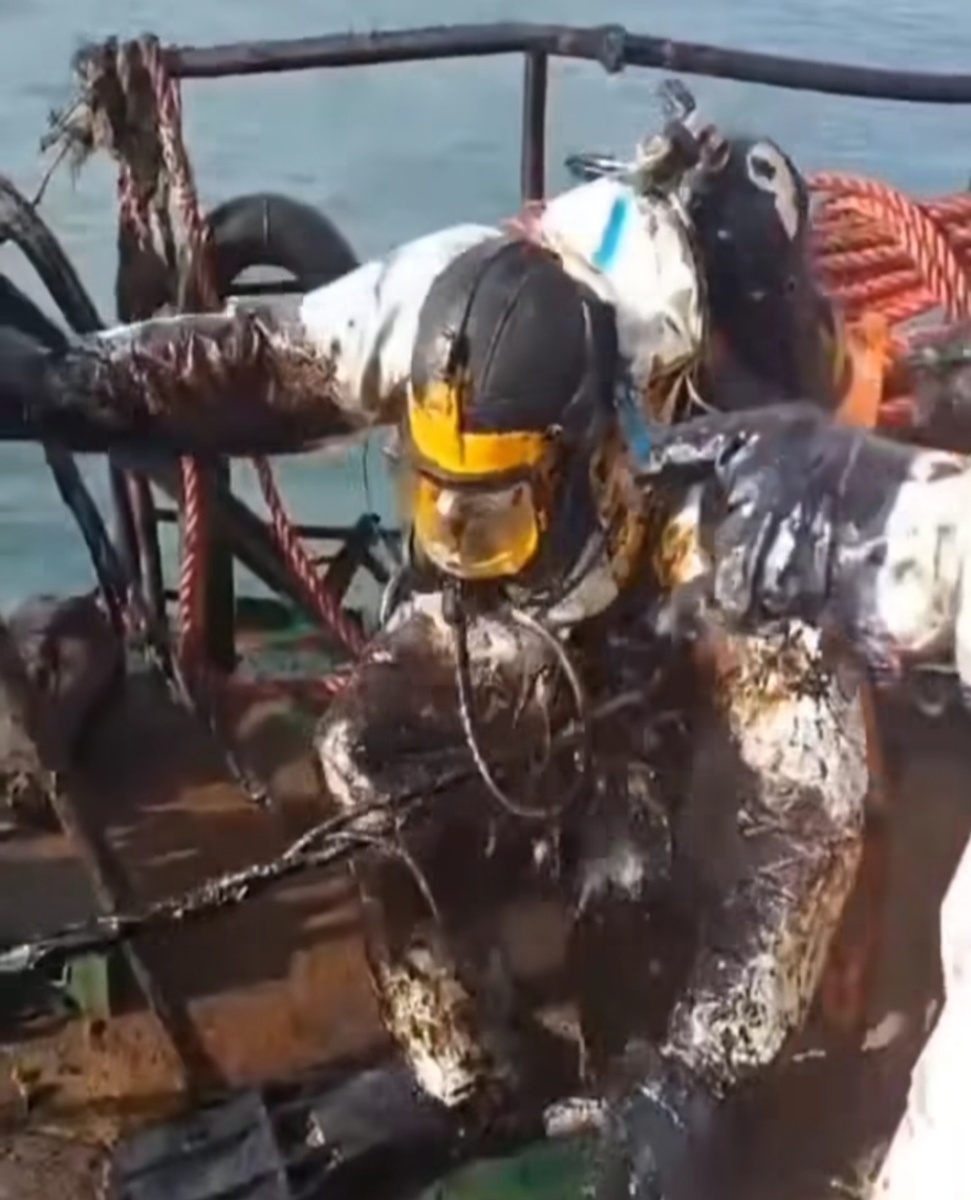 В Анапе водолазы собирают мазут вручную.