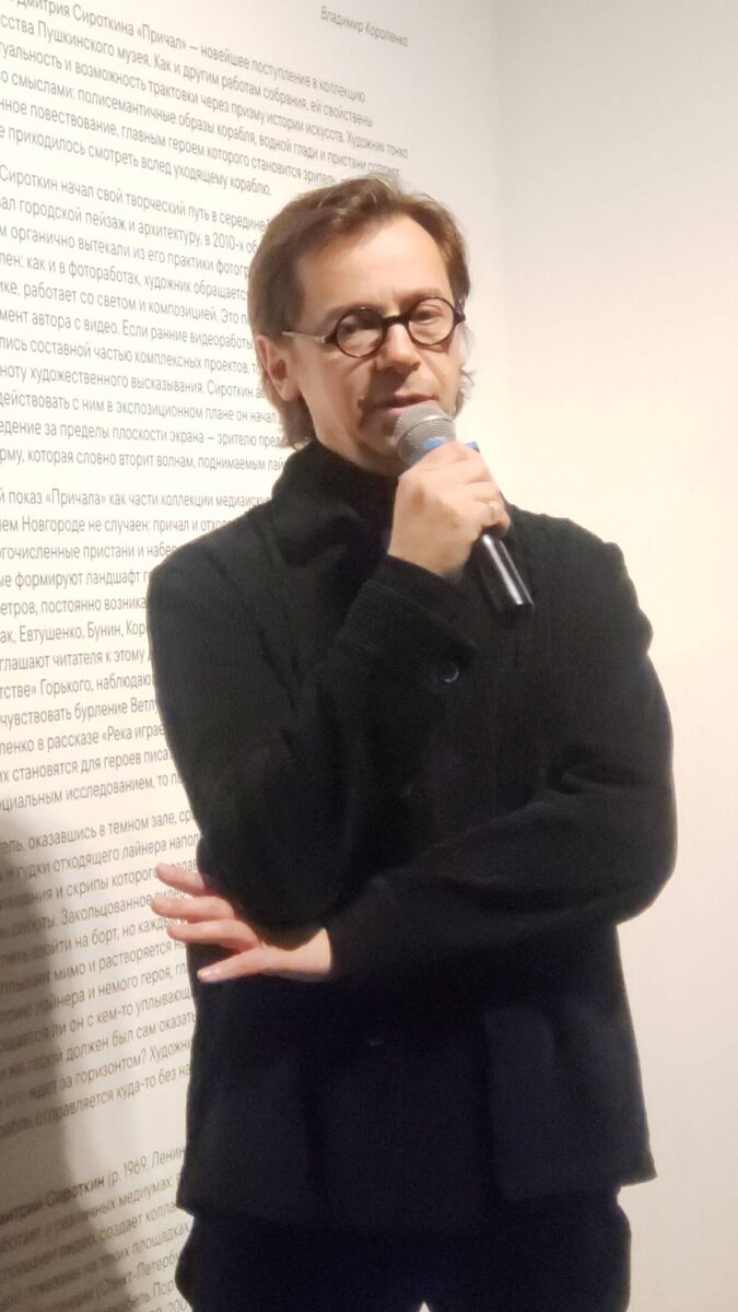 В «Причале» пересеклись несколько моментов, делающих его для нижегородцев особенно интересным. Автор Дмитрий Сироткин – тезка и однофамилец знаменитого нижегородского градоначальника – успешный российский художник, фотограф и дизайнер. Его работы хранятся, в частности, в Эрмитаже и Мультимедиа Арт музее, в собраниях зарубежных культурных центров и в частных коллекциях. Далее, тема причала, парохода, путешествия по водному пространству – исконная, родная для Нижнего Новгорода, царственно поставленного на слиянии двух великих рек. Еще одна особинка – инсталляция Дмитрия Сироткина «Причал» представляет собой новейшее поступление в коллекцию медиаискусства Пушкинского музея (пожертвование Сары Виниц) и первую в собрании кинетическую экспозицию. Ну и именно в Нижнем Новгороде состоялась премьера, самый первый показ «Причала» как части собрания ведущего музея страны. Обратите внимание: именно причал как многозначный образ с разнонаправленными смысловыми векторами. Не пристань, несущая в себ