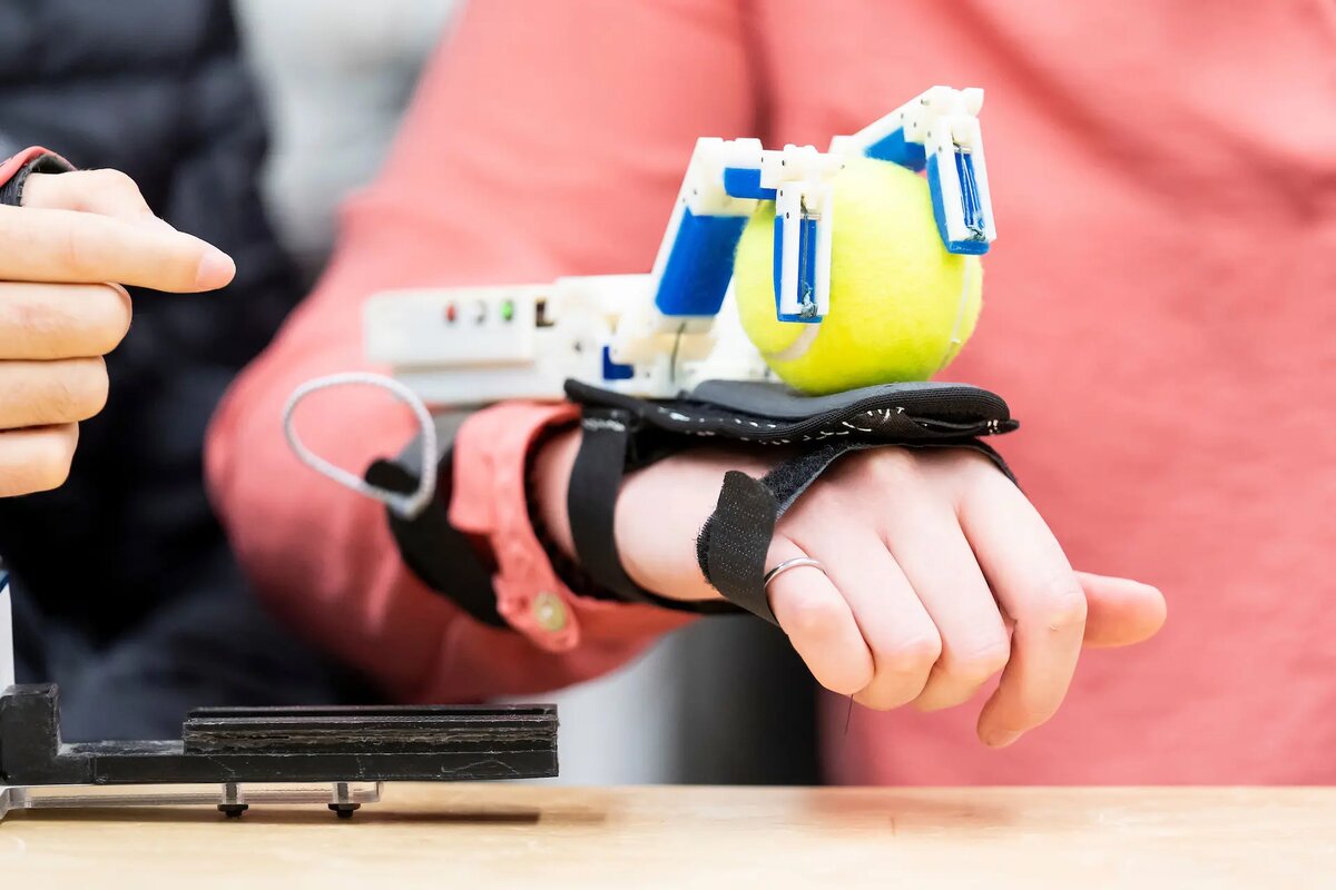 Для людей с повреждениями спинного мозга, затрагивающими руки, даже такие простые задачи, как поднятие предметов, могут оказаться сложными. Новое устройство под названием Dorsal Grasper призвано помочь им, прикрепив роботизированную руку к тыльной стороне доминирующей руки человека. Разработанный исследователями Калифорнийского университета в Беркли, Dorsal Grasper предназначен для людей с ограниченной функцией руки из-за травм между позвонками 5 и 7. Несмотря на то, что запястье еще может двигаться, захват больших или тяжелых предметов практически невозможен. Устройство представляет собой моторизованную руку с двумя гибкими пальцами и резиновой ладонью, закрепленную на мягком браслете для запястья. Устройство работает за счет распознавания движений запястья — сгибание запястья вверх активирует пальцы, а сгибание вниз заставляет их сомкнуться вокруг предмета. Встроенный датчик расстояния предотвращает случайную активацию. В отличие от других вспомогательных устройств, Dorsal Grasper по