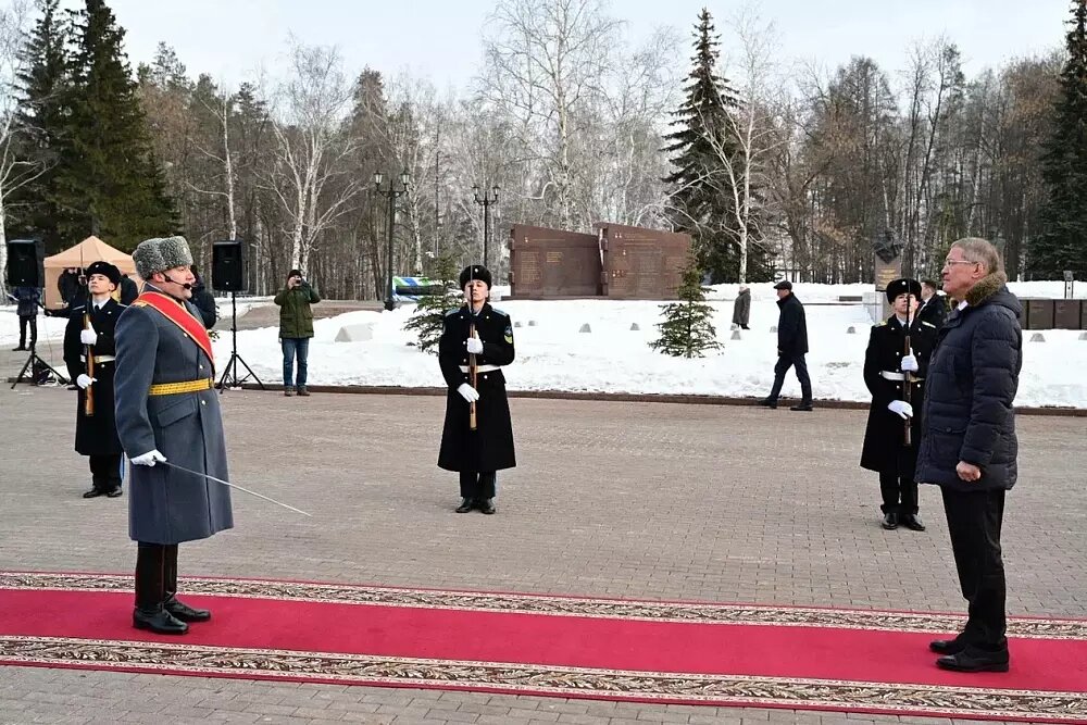 23 февраля в уфимском парке Победы Глава Башкортостана Радий Хабиров принял участие в торжественной церемонии в честь Дня защитника Отечества. Руководитель республики возложил цветы к памятнику, посвящённому подвигу Героев Советского Союза Александра Матросова и Миннигали Губайдуллина, у подножия которого горит Вечный огонь. Также в мероприятии приняли участие члены Правительства Башкортостана, руководители министерств и ведомств, ветераны Вооружённых сил, участники специальной военной операции и жители Уфы. После исполнения гимнов России и Башкортостана память павших на поле боя защитников Отечества почтили минутой молчания. В беседе с журналистами Глава Башкортостана подчеркнул важность Дня защитника Отечества и глубокий смысл этого праздника. – Мы всегда серьёзно относились к нему, но сейчас 23 февраля воспринимается по-особенному. В условиях специальной военной операции мы осознаём, насколько велика роль армии в жизни страны и как героически сражаются наши ребята, – отметил Радий Х