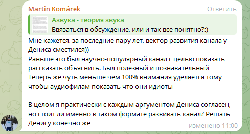 Идем дальше, давайте расскажу, что я хотел донести в своих последних роликах про высмеивание аудиофилов.