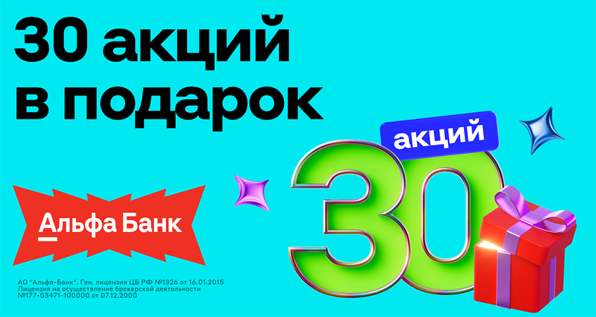 30 акций в подарок за открытие брокерского счета в Альфа-инвестиции