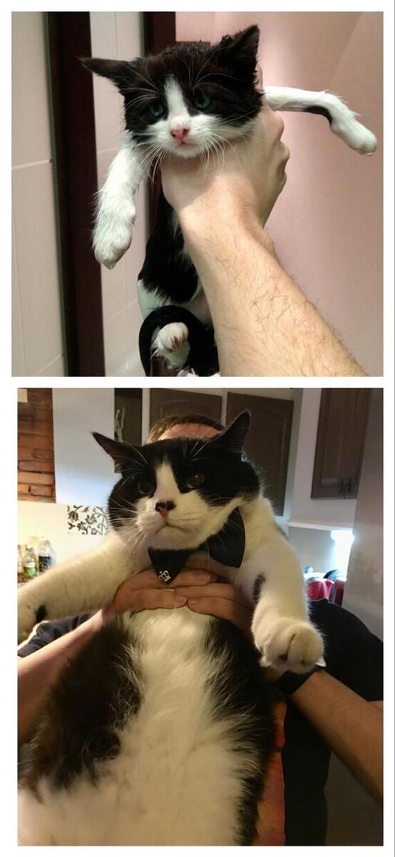 12 Лет назад решил сделать доброе дело, котам корм в приют завезти. Приехал, стою, выгружаю из багажника мешки. Выходит хозяйка приюта, говорит «дай-ка помогу, а ты пока подержи», и выдаёт мне крошечного чёрно-белого кота в руки. Доразгрузили мешки, пора бы животное отдать обратно, но чёт не получается. Котяра вцепился в куртку намертво и верещит недовольно. Ладно, думаю, хрен с тобой, поехали, буду квартиру показывать. Так у меня появился друг по имени Лось. Имя такое — эт чтобы вырос большим (сработало, 7 кило кота по итогу). Ныне вместе со мной из квартиры в дом переехал, с переменным успехом гоняет соседских котов. С участка не уходит никуда, тк респектабельность (или гравитация) не позволяет ему через забор прыгать. И ещё немного кота: Пост автора Inxite. Читать комментарии на Пикабу.