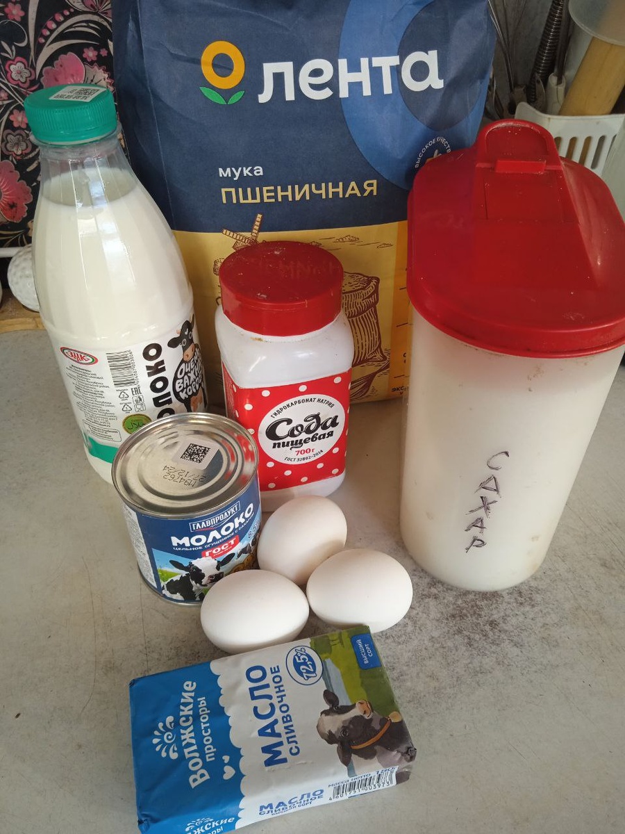 Торт "Минутка" на сковороде – это быстрый и простой десерт, приготовленный без духовки. Он не претендует на изысканность многослойных тортов, но отлично подходит для быстрого приготовления десерта к домашнему чаепитию или к приходу неожиданных гостей. Рецепт Тесто: 1 банка сгущёнки 1 яйцо 1ч.л. соды 3 ст муки несколько капель лимонного сока. Крем: 750 мл молока 200 гр сливочного масла 1,5 стакана сахара 2 яйца 3-4 ст ложки муки. Готовим коржи. 1. Смешиваем сгущёнку, яйцо и соду, гашеную лимонным соком. 2. Добавляем 3 стакана муки 3. Замешиваем тесто. 4. Делим тесто на 6 кусков (у меня сковорода диаметром 30 см, если у вас меньше, делите тесто на 8 кусочков) 4. Раскатываем тесто круглой формы толщиной 3-5 мм 5. Выкладываем на сковороду, выпекаем корж по 1 минуте с каждой стороны. 6. Когда коржи остынут, придаем им нужную форму, я использую крышку от кастрюли подходящего размера. 7. Обрезки от коржей перемалываю в крошку в кофемолке, можно в блендере. Готовим крем.