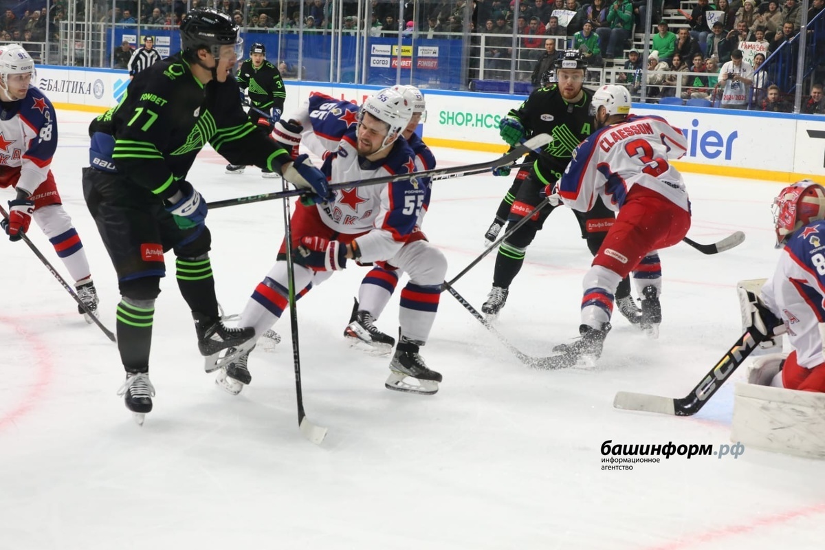 Сегодня в Уфе «Салават Юлаев» уступили ЦСКА в домашнем матче, проиграв со счетом 4:2. Об этом сообщает ИА "Башинформ". С самого начала игры армейцы захватили инициативу благодаря двум удалениям в составе уфимцев. Однако надежная игра вратаря Александра Самонова не позволила сопернику реализовать преимущество. В конце первого периода Александр Хмелевский и Артем Набиев создали несколько опасных моментов, но забить не смогли. В начале второго периода ЦСКА забросило две шайбы с интервалом в 73 секунды. Отличились Кирилл Долженков и Никита Нестеров. Затем уфимцы получили большинство, которое на 31-й минуте реализовал Денис Ян точным броском с неудобной позиции. Через две минуты «Салават» восстановил равновесие благодаря голу Шелдона Ремпала, который сходу отправил шайбу в верхний угол ворот. За три минуты до конца периода армейцы вновь вышли вперед благодаря голу Максима Соркина. В третьем периоде уфимцы усилили давление и создали несколько опасных моментов. Алексей Василевский нанес бросо