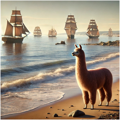 За чашкой второй, а может, и третьей кружки кофе, Медиафьюжн уже подключен к ИИ-системе. Размышляет: “Ну, чего ты мне тут приготовил сегодня?” ИИ бодро отвечает: “Вы только взгляните на эти плавные переходы, не поверите, как это круто!” Понимая, что с ИИ не поспоришь, Медиафьюжн закачивает материалы в программы для предобработки и ждёт, когда волшебство начнёт происходить. ИИ готов к креативу и предлагает десяток идей: от добавления пиратской повязки до кадров с альпакой на фоне шторма: как сделать из альпаки морского волка? Медиафьюжн соглашается на повязку и штурмовой ветер — будет выглядеть эпично! Он говорит ИИ: «Давай сделаем её самым отважным альпакой на этом побережье!»
