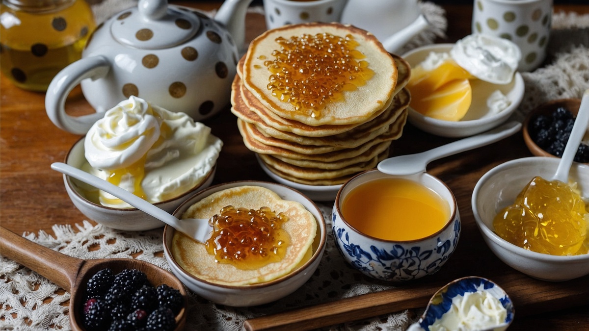- Скупиться на угощение. Стол должен быть богатым, а чем разнообразнее начинки у блинов, тем удачнее будет год.