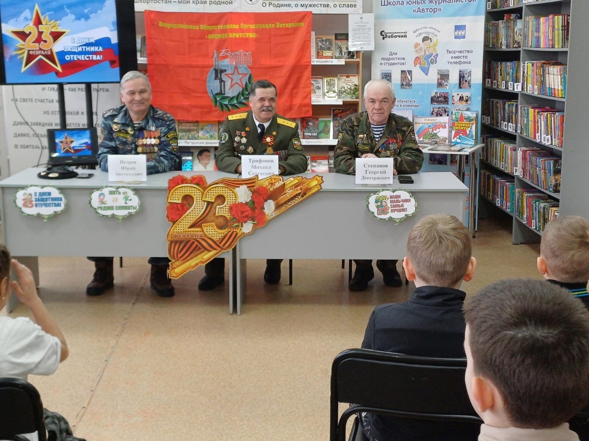 В Центре детского чтения детской модельной библиотеке №9 прошел историко-познавательный час «Встреча трех поколений», посвященный Дню Защитника Отечества. На встречу с ребятами из детско-подросткового клуба «Эльдорадо» пришли ветераны боевых действий в Афганистане и Чечне, вооруженных сил России Михаил Сергеевич Трифонов, Георгий Дмитриевич Степанов, Юрий Анатольевич Петров.