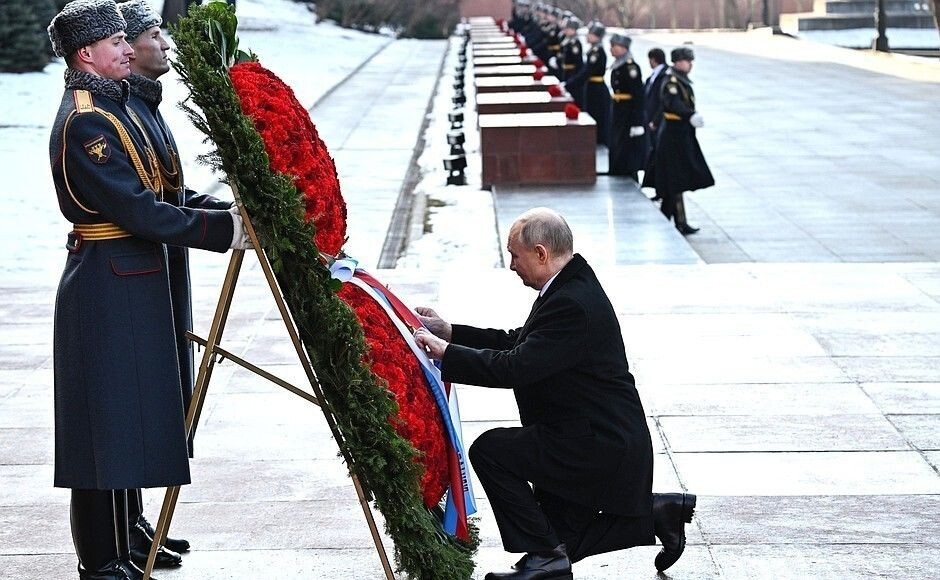 Сегодня, в День защитника Отечества, президент России Владимир Путин возложил венок к Могиле Неизвестного солдата у Кремлевской стены. Об этом сообщается на официальном сайте Кремля. Вместе с главой государства в церемонии приняли участие министр обороны Андрей Белоусов и участники СВО. Память погибших воинов почтили минутой молчания. Церемония завершилась торжественным маршем роты почетного караула и оркестра. Ранее сообщалось, что Александр Беглов возложил цветы к обелиску «Город-герой Ленинград». В Петербурге отмечают День защитника Отечества.