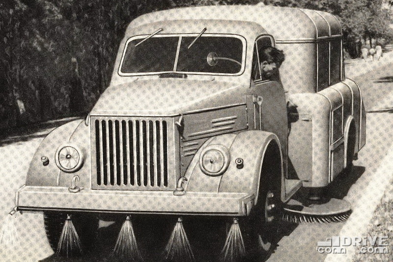 Воскресный материал о публикациях, которые проект com-drive.com сделал за неделю на недоступном ныне для России ФБ. В этот раз без ярких открытий современности – в основном модели из прошлого. Подметально-уборочная машина ПУ-20 на базе ГАЗ-51Д. Производилась на Экспериментально-механическом заводе Управления благоустройства Мосгорисполкома и заводе «Коммунальник». Машина оснащалась двумя боковыми щетками, сгребавшими смет к продольной оси автомобиля и одной задней, забрасывающей его на шнек, с которого мусор поступал на транспортер и далее в бункер. Для того, чтобы не поднимать клубы пыли, под передним бампером ПУ-20 устанавливались оросительные форсунки. Емкость бункера для смета – один куб, вместимость бака для воды – один куб. Ширина подметаемой полосы составляла 2,7 метра. Рабочая скорость - от 9,5 до 20 км/ч. Интересно, что прототип, получивший маркировку ПУ-8, планировалось оснастить вторым рулевым колесом и дублированными педалями, чтобы водитель при работе вдоль тротуара мог