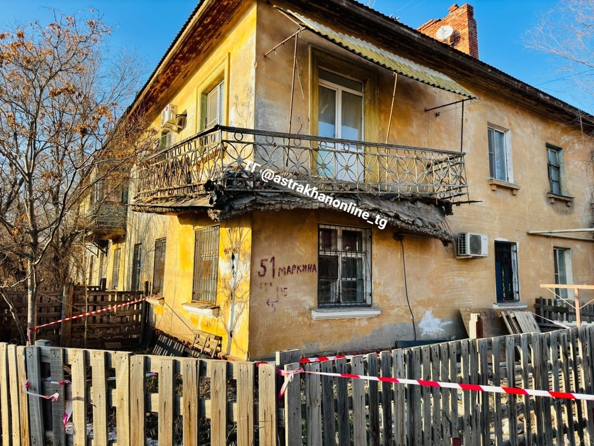 Жители с улицы Маркина ежедневно наблюдает за тем, как разрушается балкон на втором этаже жилого дома №51.