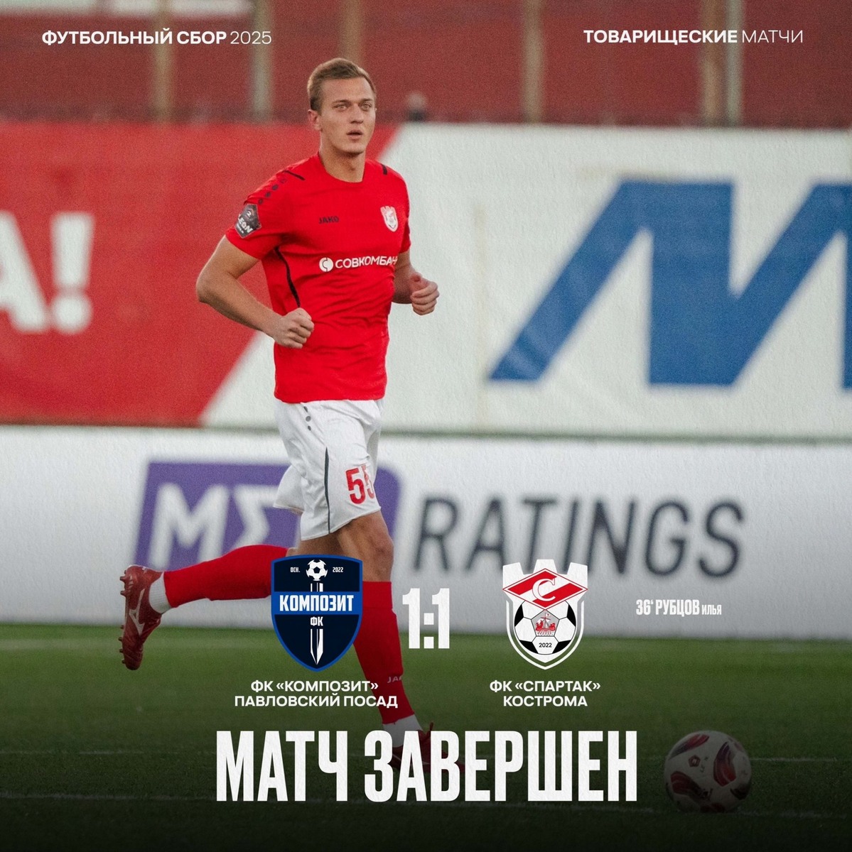 Костромичи сыграли против подмосковной команды 22 февраля красно-белые сыграли товарищеский матч в Турции со счетом 1:1. Против спартаковцев на поле вышли футболисты команды «Композит». Об этом сообщает официальная страница «Спартака» в ВКонтакте. Самой важной частью игры был фан-сектор. За всю историю спортивных сборов в Турции это первая игра, на которой фанаты поддержат свою команду вживую. «Впервые на Турецком товарищеском матче фан-сектор гнал родной «Спартак» вперёд!», — пишет источник. Открыли счет костромичи. Илья Рубцов забил гол в ворота противника на 35-й минуте. Игра была напряженной, соперник не планировал отставать. На 73-й минуте футболисту из Павловского Посада все-таки удалось забить мяч в ворота костромичей. Финальный свисток прозвучал на счёте 1:1.