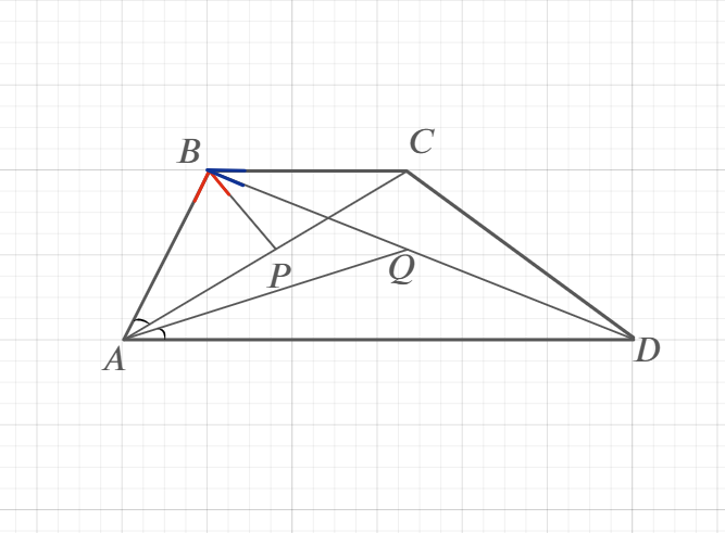 35★★★ В трапеции с основаниями AD и BC точки P и Q - середины диагоналей AC и BD соответственно. Докажите, что если угол DAQ равен углу CAB, то угол PBA равен углу DBC Идея доказательства