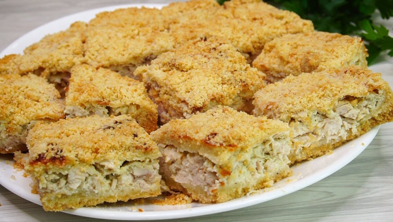 Здесь главное удержаться и сразу все не съесть) Сегодня хочу поделится рецептом песочного пирога "Королевская ватрушка" с курицей. Это очень вкусно и главное много времени не займет. Тесто замешивается, практически, за 2 минуты, можно даже руками не касаться, а ингредиенты найдутся на любой кухне. Для теста: Сливочное масло -150гр. Мука -300гр. Соль -1/3ч.л. Разрыхлитель -1ч.л. Для начинки: Куриное филе -400гр. Лук -1шт. Горчица Дижонская -1ч.л. Сметана -100гр. Яйца -2шт. Черный перец – по вкусу Соль -1/2ч.л. СПОСОБ ПРИГОТОВЛЕНИЯ Для начала приготовим начинку. Куриное филе у меня грудка 400 грамм разрежем кубиками. Кладём в миску, добавляем половину. ч. л. соли, черный перец, разбиваем 2 яйца, добавляем 100 грамм сметаны. Добавляем 1ч.л. дижонской горчицы. Перемешиваем. Луковицу порежем кубиками, и обжарим на небольшом количестве масла до полупрозрачности. Но можно этот этап упустить, а добавить лук сырым. Перемешиваем, начинка готова. В блендер кладем 300 грамм муки, добавляем 1/2ч.л.