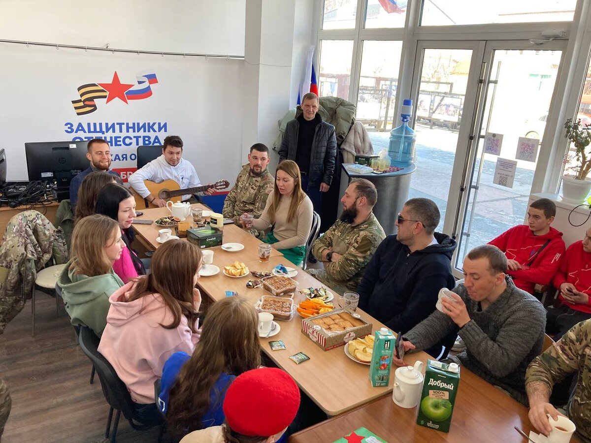 Активисты Движения Первых поздравили с Днем защитника Отечества военнослужащих на Херсонском направлении. Об этом сообщили в пресс-службе движения. В рамках мероприятия, которое прошло в фонде «Защитники Отечества», также приняли участие активисты «Юнармии» и Народного фронта. «Ребята выразили свою благодарность и уважение бойцам херсонского направления, которые стоят сегодня на защите нашей Родины», — говорится в сообщении. Активисты фонда «Защитники Отечества» не только угостили всех чаем и сладостями, но и подготовили приятные сюрпризы. Дети вручили военнослужащим яркие открытки с теплыми словами поддержки, а также спели песни. Ранее ТРК «Таврия» сообщала, что добровольцы Алешкинского филиала штаба «Мы вместе» подготовили подарки российским военнослужащим ко Дню защитника Отечества. Также добровольцы из Херсонского регионального отделения Всероссийского студенческого корпуса спасателей почтили память погибших героев, возложив цветы к могиле Неизвестного солдата.