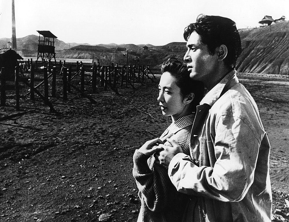 Из пережитого визуального опыта мне больше всего понравились несколько моментов фильма. Первый, когда на шахту прибывает эшелон военнопленных - состав товарных вагонов в пустой степи. Работники начинают открывать вагоны, а оттуда как мешки выпадают люди, которые, такое чувство, были набиты туда плотно до отказа. Потом пленные видят телегу с водой и бегут за ней по степи, а работники шахты пытаются остановить полуживых китайцев. Несколько крупных кадров изможденных лиц с синяками под глазами и походкой полумёртвых каторжан. Эти кадры очень странным образом мне напомнили совсем другое кино. Я более чем уверен, что спустя всего семь лет после выхода этой картины, Джордж Ромеро впечатлялся ею при создании своей "Ночи живых мертвецов". Глаз как-то на автомате сопоставил идентичность этих кадров и идей. Также мне теперь понятно, что Харуки Мураками в своих "Хрониках заводной птицы" сцены Халхин-Гола писал по этому фильму. И подача его тоже ясна, потому что в фильме говорится о наказании якобы "невиновного человека". Но Мураками видимо не нашел мысль автора о том, что казнят его не просто так, и вина его в том что он, будучи "хорошим добрым гуманистом", либо ничего не делал, либо делал недостаточно для того, чтобы ситуацию изменить. И будучи на войне, так или иначе, вынужден был убивать людей, врагов, своих, виновных и невинных. Невероятные кадры во время "скитаний" огрызков квантунской армии, когда степные пейзажи нам показывают строго по диагонали под оглушительное музыкальное сопровождение. Это как раз середина фильма, по которой ясна мысль, что дальше лучше не будет и движемся мы прямиком в глубины ада...