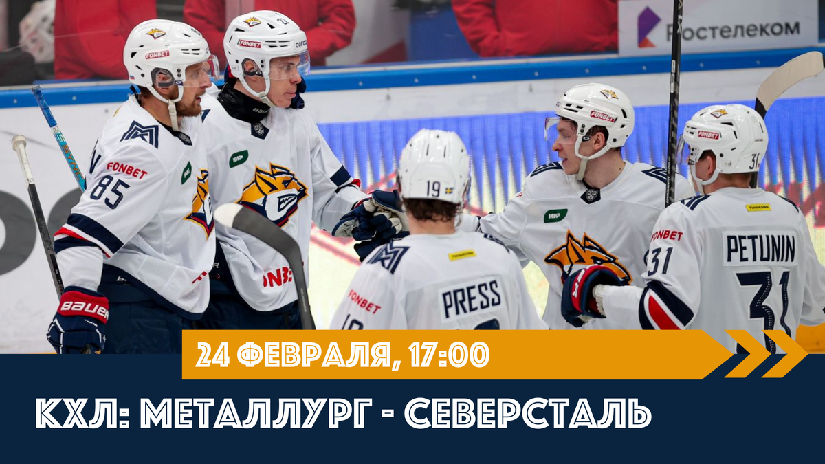 24 февраля в регулярном чемпионате КХЛ состоится очередной матч – между собой в Магнитогорске сыграют действующий чемпион Кубка Гагарина «Металлург» и череповецкая «Северсталь». Перед началом этой встречи букмекеры считают фаворитами магнитогорцев, выставляя на победу хозяев льда в основное время коэффициент 1,97 (БК «Фонбет»).