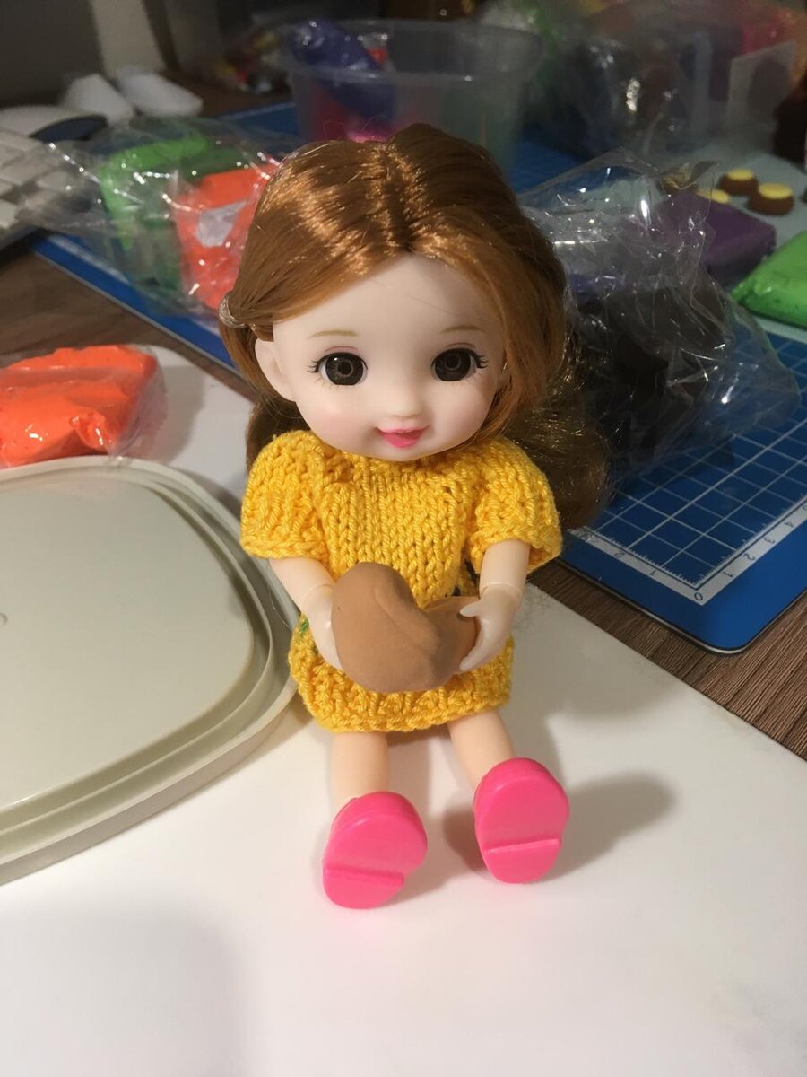 С праздником всех мужчин поздравляю я и моя кукольная команда! В нашем кукольном доме проживает всего трое мальчишек и один кот Саймон. Кот не в счет, а вот мальчиков на кукольном совете было решено накормить вкусненьким и поздравить. Девочки очень серьезно подошли к этому вопросу: что приготовить? Какие подарки вручить? Решено было испечь тортики, ватрушки, пирожки и ... что-нибудь еще. Маришка месила тесто. Иришка стряпала ватрушки. Девочки постарше напекли пирожков. Вера принесла целый батон для бутербродов. А потом - было самое интересное: девчонки пекли и украшали тортики. Сначала испекли шоколадные коржи и промазали их банановым кремом. "Чего-то не хватает" - заявила Иришка. -Добавим еще белковый крем! -А клубникой украсим? -Конечно! И шоколадными фигурками! -Одного торта не хватит, надо второй печь! -Давайте его тоже украсим! Кремом и ягодами! -Ну вот, все готово! -Можно накрывать на стол и звать мальчиков! Мальчишки не заставили себя ждать. Стол и правда выглядел празднично: то