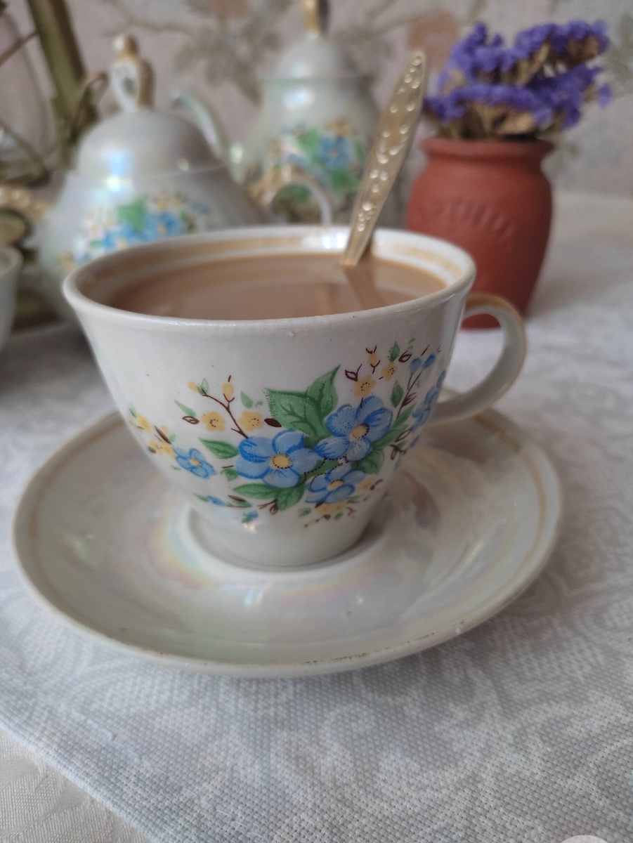 Захотелось мне к весне обновку. Прям хочу-немогу! Вы подумали, что хочу одёжку? Нет, хочу весеннюю чайную пару. У меня имеется Полонский перламутровый сервиз с незабудками. Но он ближе к маю. А сейчас захотелось ранневесенний. Как всегда Авито в помощь. И вот долгожданная посылочка получена. Остановила свой выбор на Дулево. Очень нежная и легкая. В отличном состоянии. Ручная роспись. "Золотая ветка" , но в других источниках "Ветка мимозы/розовая", бывает ещё зелёная. Также встречалось название "Верба". Поиск автора и другой информации о паре на просторах сети не увенчался успехом. А блюдце как хорошо! Я здесь вижу и мимозу, и вербу, и первые листики. Эта чашечка очень подойдёт к весенней капели и ручейкам. Ждём весну! Что же ещё хочется моей душеньке?☺️