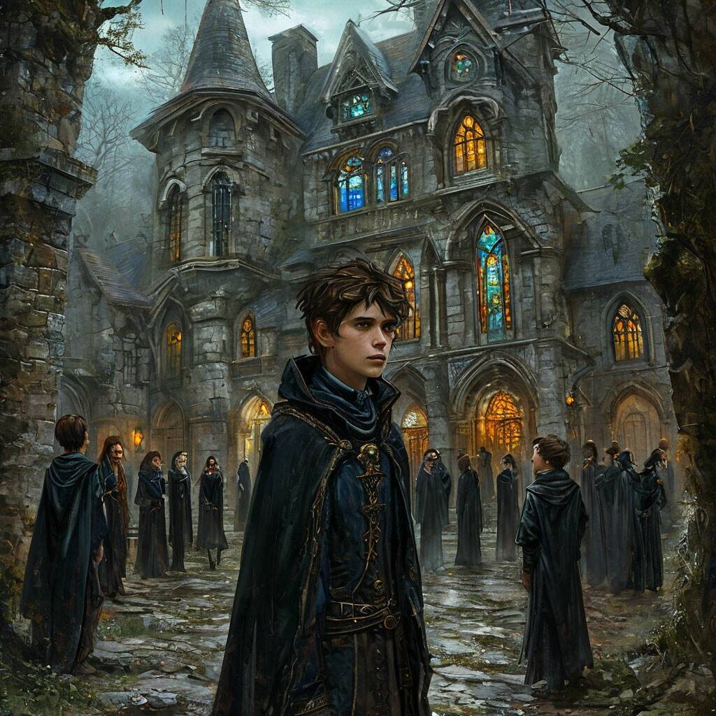 Глава 1: Сомнения в тумане Алекс провел пальцами по холодному камню академии "Элирион", где даже воздух был пропитан магией. Его ладонь дрожала, едва касаясь страниц древнего фолианта на лекции по темным артефактам. "Слишком слаб", — шептал внутренний голос, когда заклинание однокурсника взорвало в воздухе фейерверк из искр, а его собственное едва вспыхнуло. Профессор Вейра, чьи серебряные глаза видели сквозь души, остановила его после занятий: "Страх — это яд, Алекс. Он пожирает магию быстрее, чем обратная вспышка". Но ее слова лишь оставили горький привкус — он знал, что его страх глубже. Глубже, чем пропасти Шеолега, куда даже демоны не спускались. Глава 2: Зов Погибельного Дома Лес шептал. Ветви цеплялись за плащ Алекса, словно пытались удержать, когда он бежал от насмешек после провала на дуэльном турнире. И тогда он услышал его — звук, похожий на плач ребенка и скрежет железа. Дом возник внезапно: стены, поросшие черным плющом с шипами, капавшими кровавым нектаром. Дверь скри