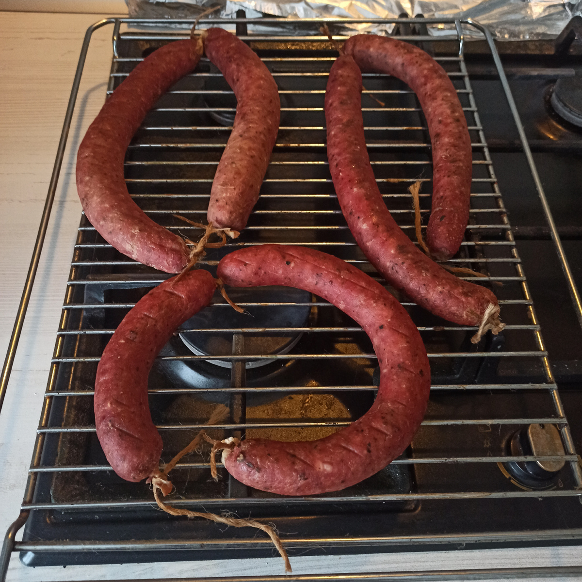 Сегодня я расскажу Вам как делал сам, домашнюю колбасу. Это не так сложно, как кажется на первый взгляд и вполне под силу каждому. Нам понадобиться полтора килограмма свинины и полтора килограмма говядины, специи, соль нитритная, свиная кишка для оболочки. Свинину и говядину порезал небольшими кусочками, посолил и добавил специи по вкусу, немного добавил нитритной соли, ее нужно совсем немного, поставил на пару дней в холодильник под пленку. Все полежало, промариновалось и просолилось, настало время прокрутить все через мясорубку, для колбасы использовал крупную сетку, еще лучше все было порезать небольшими кусочками, тогда было бы еще интересней. Свиную кишку, купил без проблем, она везде продается в известном сетевом магазине с эмблемой поросенка, перед приготовлением, ее еще раз промыл, и на часок замочил в прохладной воде. Для набивки колбасы в кишку, у меня не было специальной насадки для мясорубки, но это не проблема, сходил в магазин и купил газировку, в бутылке с узким длинным