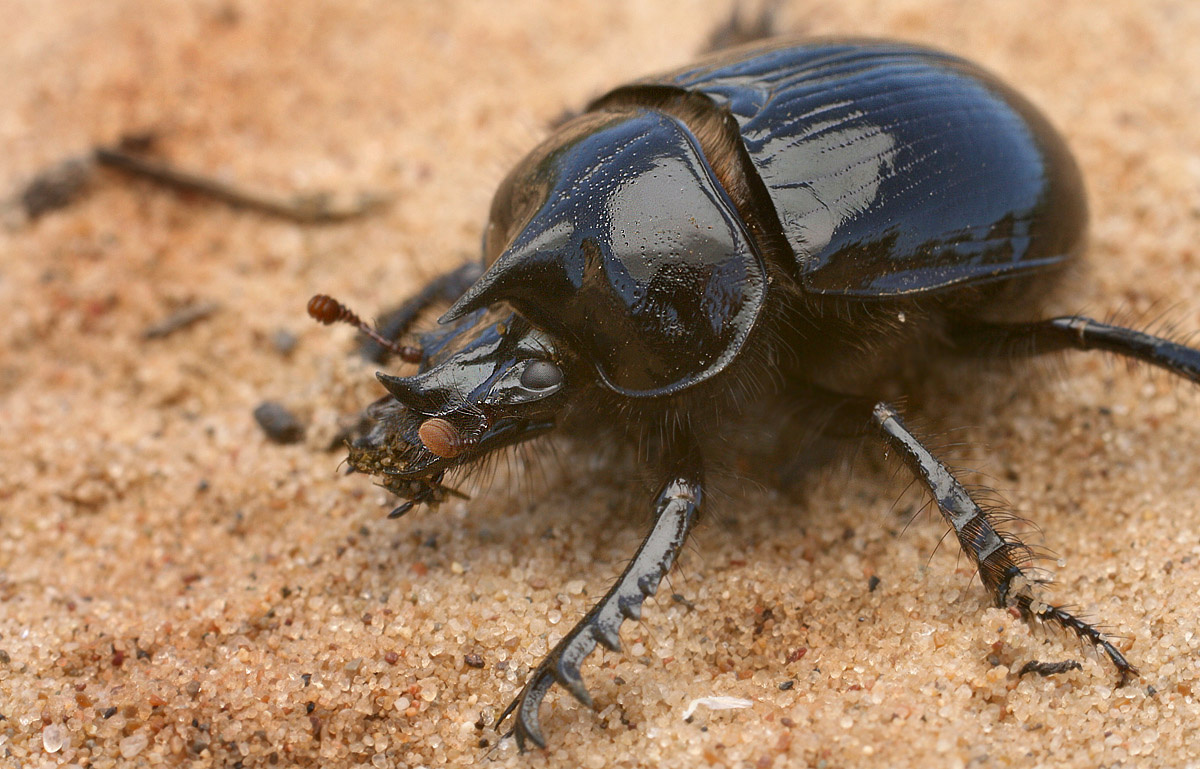 Жук навозник, или жук-сапрофаг, представляет собой уникального представителя семейства навозников (Scarabaeidae). Эти насекомые играют важную экологическую роль, перерабатывая навоз и органические остатки, что способствует поддержанию здоровья экосистем и улучшению почвы. Жук навозник распространен по всему миру, но особенно часто встречается в теплых и тропических регионах. Одной из самых интересных черт жуков навозников является их привычка собирать и перерабатывать навоз крупных животных, таких как крупный рогатый скот, слоны и другие травоядные. Они тщательно выкапывают навоз, формируют из него шарики и перетаскивают их в свои норы. Это не только служит для них источником пищи, но и обеспечивает безопасное место для откладывания яиц. Внутри шарика навоза развиваются личинки, которые после вылупления находят в нем богатый питательный корм. Жуки навозники имеют разнообразную окраску и форму тела, что делает их интересными для наблюдения. Некоторые виды могут быть ярко окрашены, с мет