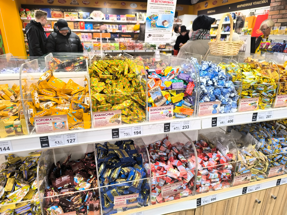 В воскресенье поехали прогуляться в центр. Почти спонтанно. Но прогулка получилась удачной. Лёгкий морозец, яркое зимнее солнце, отсутствие ветра сделали прогулку приятной во всех отношениях. На Рождественке зашли в "Алёнку". Обратила внимание на присутствие в ассортименте региональных конфет. На фотографиях ниже покажу, какие именно региональные конфеты с названиями городов имеются в продаже. Магазин стал много внимания уделять продукции не только московских фабрик. Вот вафельные торты "Самойловские" из Санкт-Петербурга. Фабрика является объектом промышленного туризма Конфеты "Сувенир из Пензы" производства Пензенской кондитерской фабрики. 167 рублей за 100 гр. Без карты магазина и 131 рубль за 100 гр. по карте. Конфеты "Новосибирск Экстра" производства Новосибирской шоколадной фабрики 157 рублей за 100 гр. без карты магазина и 126,90 рублей за 100 гр. по карте магазина. Конфеты Горьковские производства Сормовской кондитерской фабрики. 162 рубля за 109 гр. без карты магазина и 124 р