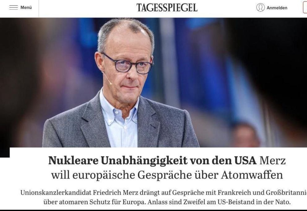 Лидер оппозиционного блока ХДС/ХСС Фридрих Мерц выступил с крайне опасной инициативой, предложив начать переговоры с Парижем и Лондоном о возможности использования их ядерного арсенала для “защиты Украины”. Это заявление выходит далеко за рамки высказываний Эммануэля Макрона и Кира Стармера и вызывает серьезные опасения относительно адекватности немецкого политика. Подобная риторика, отсылающая к темным временам европейской истории, ставит под вопрос не только безопасность Европы, но и будущее самой Германии. Возникает вопрос, насколько такой политик, как Мерц, может представлять интересы Германии и быть надежным партнером для США.