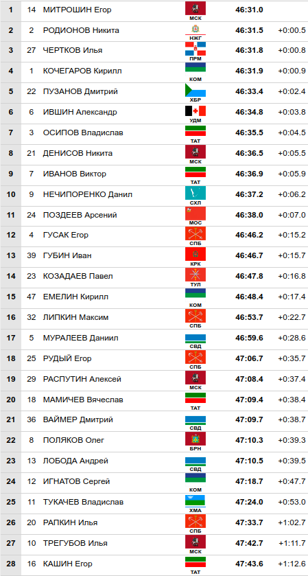 📌 "Жемчужина Сибири" (Тюменская область) Масс-старт 20км СВ. Мужчины В отсутствии Савелия Коростелёва, который уехал на "Гонку Легкова", в сегодняшнем масс-старте не было явного фаворита. Претендентов было много! А может Кирилл Кочегаров с самым высоким рейтингом и первым стартовым номером, или Владислав Осипов с лучшим результатом разделки здесь (не учитывая Коростелёва). Ну или Егор Митрошин уже с победой в спринте Тюмени. Вариантов было много, повторюсь! Со старта гонки стало понятно, что в первую очередь нельзя было забывать об Александре Ившине. Самый титулованный лыжник в этой гонке, двукратный чемпион мира среди юниоров, давно ничего не выигрывал и был сегодня очень серьезно настроен. Ившин возглавил гонку с первых километров и большую часть гонки работал первым. Удивительно, что Саша держал вроде высокий темп, но убежать не получалось. Более того, даже не удавалось разорвать пелетон. До 18-го километ