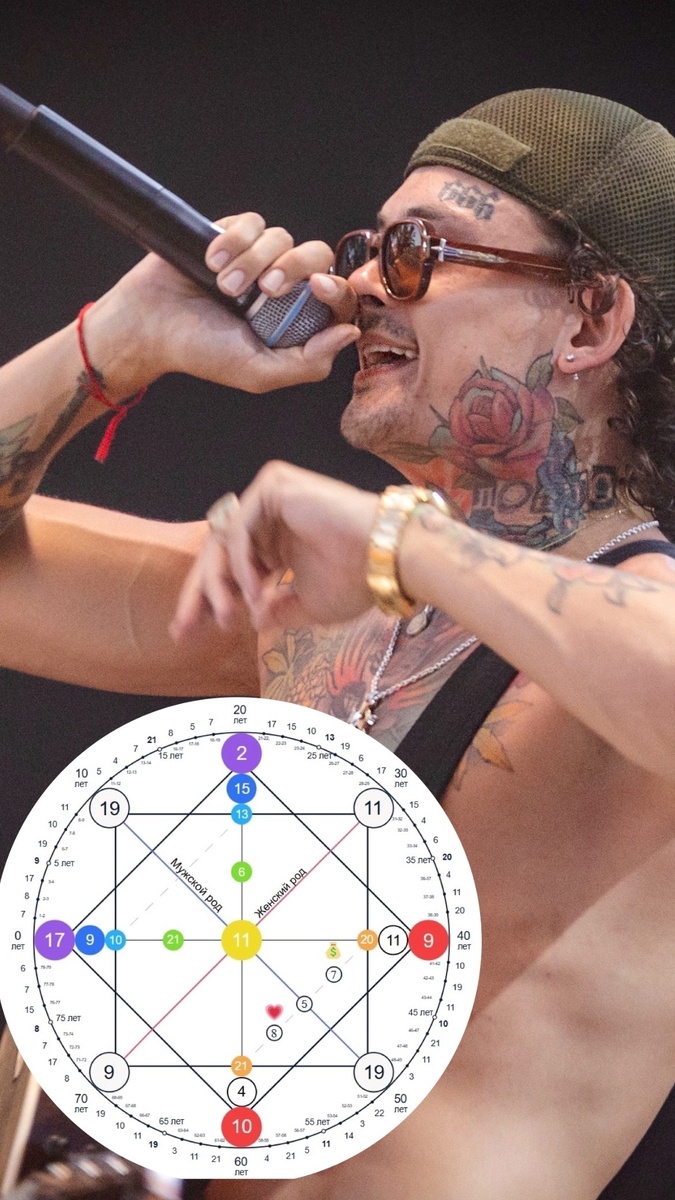 У Алишера год трансформаций. С точки зрения психологии и нумерологии, мне было интересно его разобрать и послушать его эфир с рехаба. Его мысли, мотивы и движущие силы на данный период времени. Как всем известно, со своего последнего концерта, Алишер полетел в реабилитационную клинику. Причина по словам артиста, депрессия, психический эпизод и невозможность справится самостоятельно с алкогольной зависимостью. Сейчас он проходит лечение, сидит на антидепрессантах, сводит с лица тату и утверждает, что хочет вести «чистую» жизнь. Посмотрела его матрицу и энергии в главных точках. По типу личности, его главная энергия 11 аркан - сила. Этот человек обладает потенциалом энергии сродни жерлу вулкана. 🌋 Очень много агрессии, ярости, неконтролируемых вспышек эмоций. Таким людям противопоказано в плюсе пить и курить. На них это действует разрушающе. 11-ой энергии все эмоции нужно отдавать в спорт и только. В проработке у него программа 21-4-10 жизнь в угнетении. В жизни она может проигрыватьс