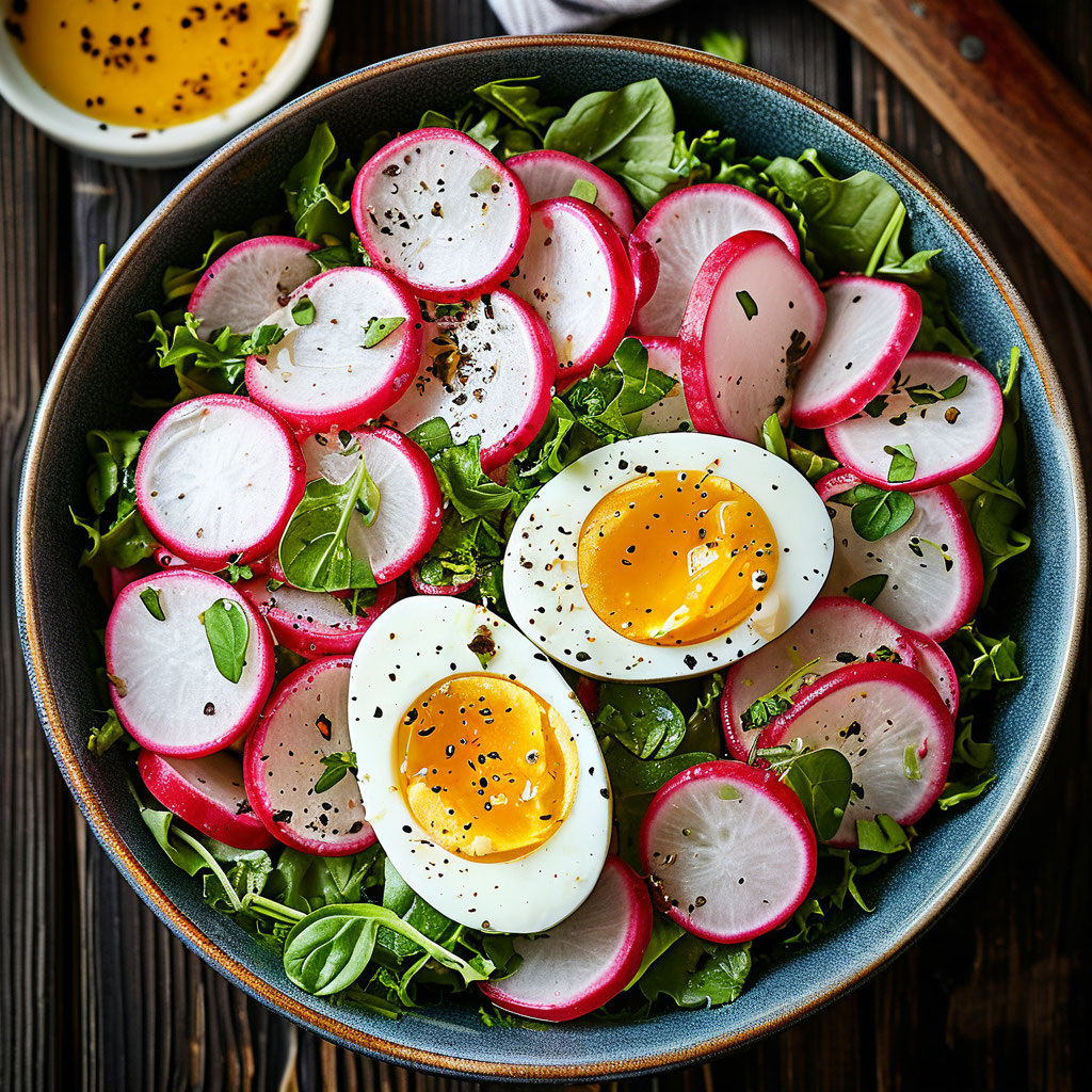 Весна – время пробуждения природы, ярких красок и свежих овощей! Этот простой и быстрый салат из редиса с яйцом и сметаной станет идеальным обедом в любой день. Он полон витаминов, прекрасно утоляет голод и дарит заряд энергии на весь день. Редис: 200г Совет: выбирайте редис с упругими, яркими листьями – это признак свежести.