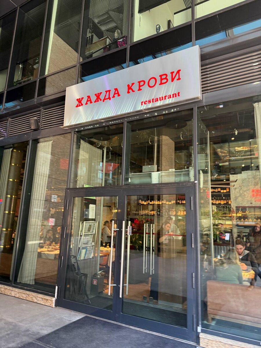 В преддверии мужского праздника я решила порадовать своего супруга и забронировала столик в поистине мужском ресторане. Мясной ресторан "Жажда Крови" на Белорусской по адресу: Лесная ул., 9. Брутальность во всем: металл, дерево, сочные красные акценты. Но эту суровость смягчают белоснежные скатерти и милые мини-вазочки на столах. Заведение небольшое, столы расположены близко друг к другу. Самый неудобный столик в холодное время - рядом с гардеробом. Там вас могут ненароком задеть верхней одеждой. Все столы были заняты, поэтому точно бронируйте заранее, особенно в праздники. Мы расположились у бара. Стол оказался очень маленьким даже для двоих, но впечатления от блюд затмили этот нюанс. Блюда были сплошной восторг! Комплемент от ресторана: нежнейшее говяжье сало и кусочки мягкого черного хлеба. Такого вкусного сала я, пожалуй, очень давно не пробовала. Оно таяло во рту, вызывая желание попросить добавки. А это пока только закуска... Фуагра с анчоусом. Его мне посоветовал, как и пойти в