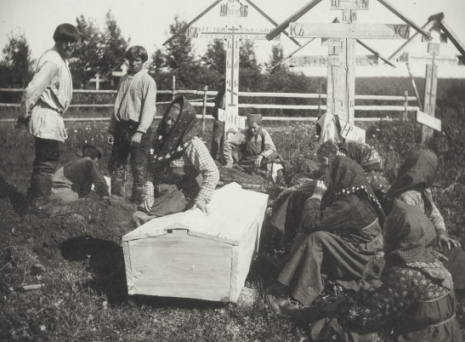 Когда русскому крестьянину приходило время задуматься о душе, он непременно должен был позаботиться о том, чтобы его собственный уход и жизни, равно как и кончина членов его семьи, была подготовлена надлежащим образом. Так, в обязанности мужа входило изготовление гробов для себя и своей супруги. При этом в прежние времена гроб делали долбленым, по форме человеческого тела – если гроб оказывался по размеру больше необходимого, это считалось дурным предзнаменованием и сулило смерть еще кому-то из ближайшей родни. В то же время гроб должен был быть «удобным» для покойного – ведь тело должно было лежать в нем до Страшного суда. К женским же обязанностям относилась подготовка похоронных («смертных») узлов – для себя, мужа и неженатых членов семьи пожилого возраста.
