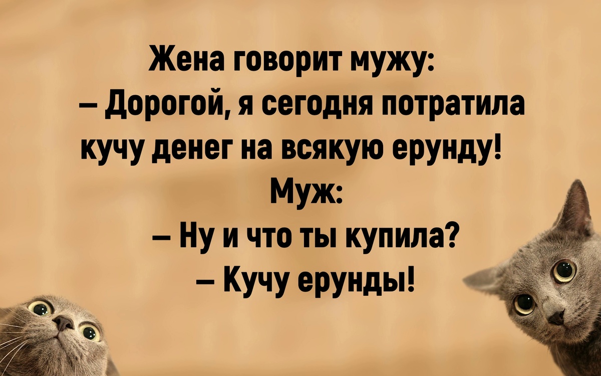 Жизнь, порой, подбрасывает нелегкие испытания, но искренняя улыбка способна преобразить даже самый мрачный день. А что может быть лучше хорошего анекдота? Смех - это мощное лекарство, помогает снять стресс и улучшить настроение! Вас ждёт свежая порция отборных анекдотов на самые разные темы, заряжайтесь позитивом на весь день! 1. Странно…🍰 Шоколад — воздушный, печенье — нежное, тортик — легкий… А откуда взялись эти 10 килограммов?! 2. Ищу работу: — Мне срочно нужна работа! У меня жена и пятеро детей! — И это все ваши навыки? 3. Про блондинок... — Как заставить блондинку смеяться в понедельник? — Рассказать ей анекдот в пятницу! 4. Кулинарный блогер в видео Сегодня мы приготовим простое и быстрое блюдо из того, что есть в холодильнике - фуа-гра с трюфелями под соусом из перепелиных яиц! 5. Фразы, вызывающие панику:😅 - у меня есть кое-что, что тебе нужно знать... - неверный логин или пароль.. - к доске пойдёт... - к вам в кабинет идет проверка... - это будет не больно... - мы должны по