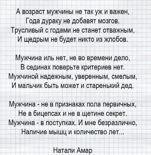 Я - против. Мой друг старше меня намного. Мужчина - в мужественности. То есть в способности взять на себя ответственность, в поступках... А как быть с интимной стороной вопроса?
