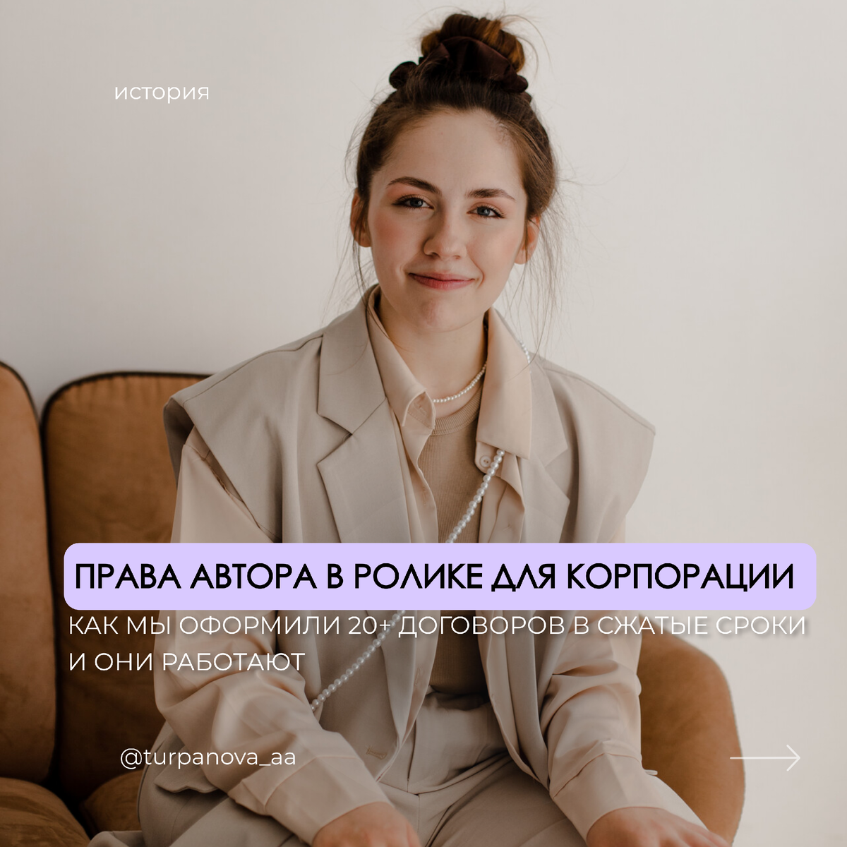 Представьте: крупная компания заказывает авторский ролик для внутреннего использования. Это не просто видео — это аудиовизуальное произведение, где каждая деталь имеет значение. Звук, графика, озвучка, дизайн — всё это создается разными людьми, и каждый из них — автор. Задача была непростой: нужно было сделать так, чтобы все эти «кусочки» прав каждого автора перешли компании. И сделать это быстро, без ошибок и задержек. — Более 20 договоров: со звукорежиссером, художником, дизайнером, актером озвучки и другими участниками. — Каждый договор должен быть не просто текстом, а понятным и удобным в согласовании. Ведь творческие люди не любят читать длинные и сложные тексты. — Сжатые сроки: проект нужно было реализовать быстро, но без потери качества. ➀ Мы беремся за дело. Первый шаг — погружение в проект. Сразу стало понятно, что задача требует глубокого понимания не только юридических, но и творческих кинопроцессов. Например, звукорежиссер, который создавал уникальные звуковые эффекты, волн