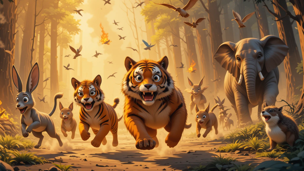 Солнце пекло так, что даже толстокожие медлительные носороги прятались в тени редких баобабов. Воздух был неподвижным, густым, пахнущим перегретой землёй и дымом. В глубине джунглей, среди зарослей лиан, разгорелся очередной пожар. Ох, и жарко же! – проворчал старый лев Леопольд, облизывая пересохший язык. – Даже охотиться не хочется. — Ага, — проворчала гиппопотамиха Гиппа, разбрызгивая грязь по своей разгорячённой шкуре. — Только и делаешь, что переходишь с болота на болото да прячешься от жары. Может, кто-нибудь что-нибудь сделает с этим огнём? – пропищал маленький Чико, с беспокойством глядя на распространяющийся огонь. А кто? – прорычал Леопольд, лениво почесывая когтем за ухом. – Мы же не пожарные? Внезапно из-за кустов высунулась длинная шея жирафа Джеффри. Его глаза горели необычным энтузиазмом. Я! Я потушу этот чёртов огонь! – провозгласил Джеффри, и его голос прозвучал неожиданно громко и уверенно. – Ты? – хором переспросили звери. Недоумение на их лицах было настолько явным,