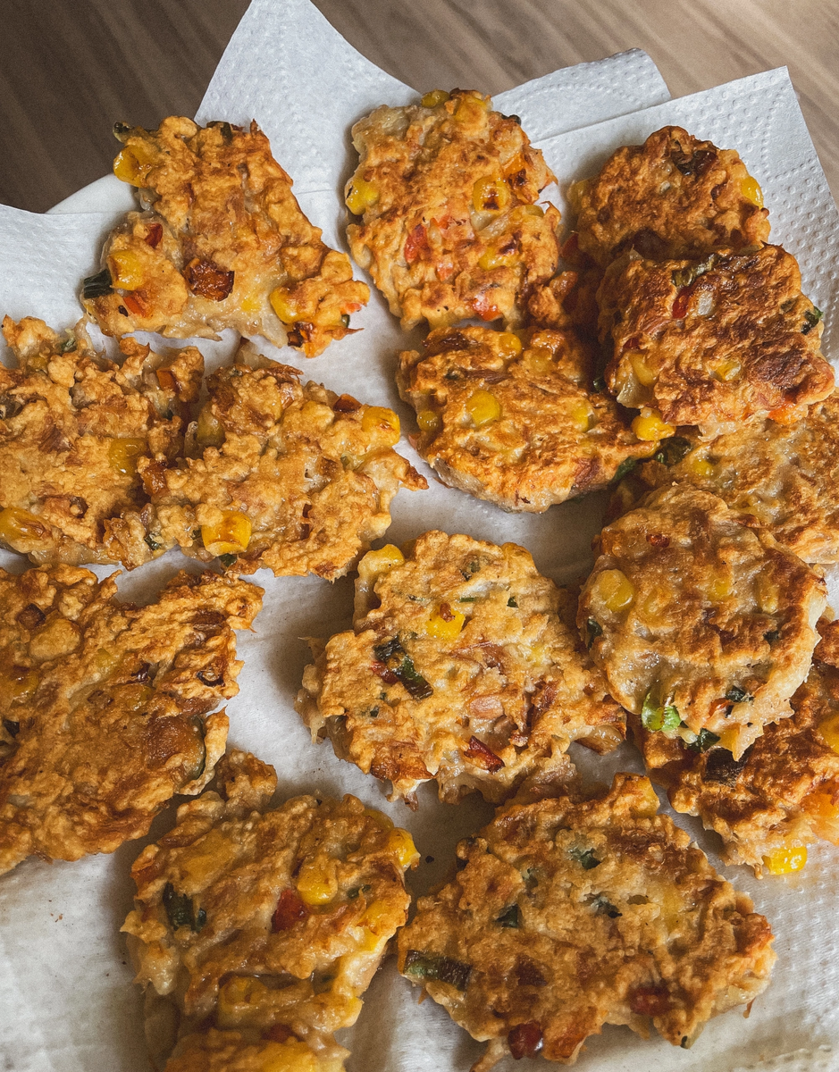 🐟 1 банка тунца; 🐟 четвертинка луковицы; 🐟 1 стебель зеленого лука; 🐟 30 гр.моркови/ кабачка/болгарского перца/острого перца; 🐟 2 зубчика чеснока; 🐟 2 яйца С0 или 3 яйца С2; 🐟 2 ст.л. муки (можно заменить на любую другую); 🐟 1/2 ч.л. соли; 🐟 1/4 ч.л. черного перца; 🐟 2 ст.л. тертого сыра или кукурузы; 🐟 растительное масло. 1. Мелкими кубиками рубим овощи, зеленый лук мелкими кольцами, чеснок пропускаем через пресс. 2. Из банки тунца необходимо слить сок или масло. Отжать хорошенько, а иначе все растечется. 3. Смешать тунец, овощи, зелень, специи, муку, яйца и перемешать. 4. На сковородку налить масло и прогреть хорошо на медленном огне. Выкладывать по 1 столовой ложке смеси тунцовой, формируя небольшие оладушки. 5. Жарить до золотистой корочки с двух сторон. #рецепт
