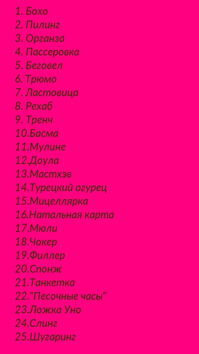 Ну, давайте, что ли, тоже поиграем. Раз вам идея понравилась. На голубеньких флажках будет написано то, что должны угадать девочки, то бишь - "мужские" слова. А на розовеньких - понятное дело, наоборот. Впрочем, отгадывать можно всё, наша задача - выяснить, кому создатели игры подыгрывали, подсовывая лёгкие вопросы. Короче, кто молодец и много угадает, тому расскажу правила ещё одного прикольного конкурса. Тоже немного гендерного. Да ладно, вру, конечно. Всем расскажу. Итак. Угадывают мальчики: Угадывают девочки: Ну что, сложно? Это я вам полегче выбрала. Эбру, ниблер и бой-болл не стала включать.) В общем, пишите результаты в комменты, только, чур, честно! Не что-то "вроде с рыбалкой связано, не?", а конкретно: "Пыр - это..." В школе же учили давать полное и развёрнутое определение? Вооот.) *** А теперь, как и обещала, призовая игра. Вообще, для мужчин, а там кто его знает. При современных-то реалиях. Значит, берётся в интернете (или рисуется, там несложно) женское платье. Укра