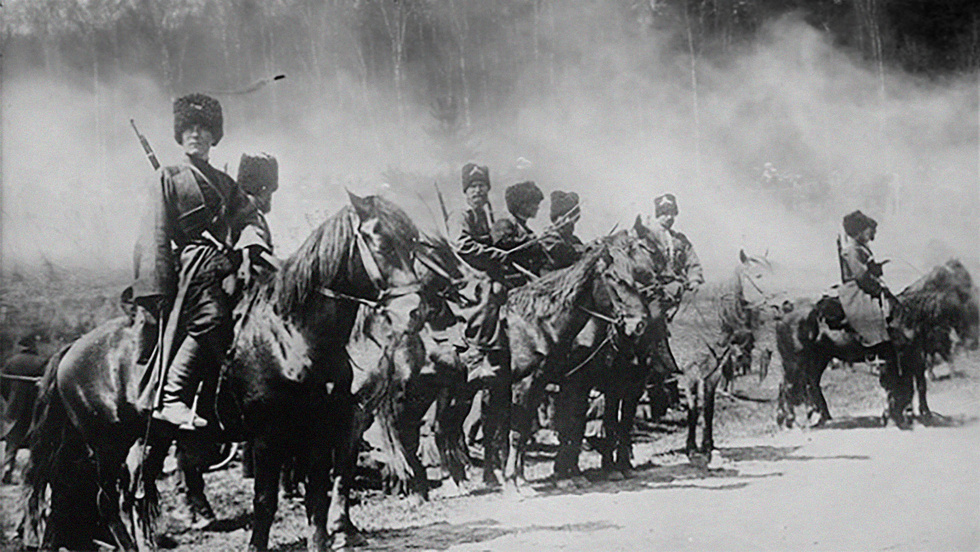Когда казак садился на коня, жена должна была держать коня под уздцы; если казак был холост, коня держал отец. Мужчины подавали оружие.