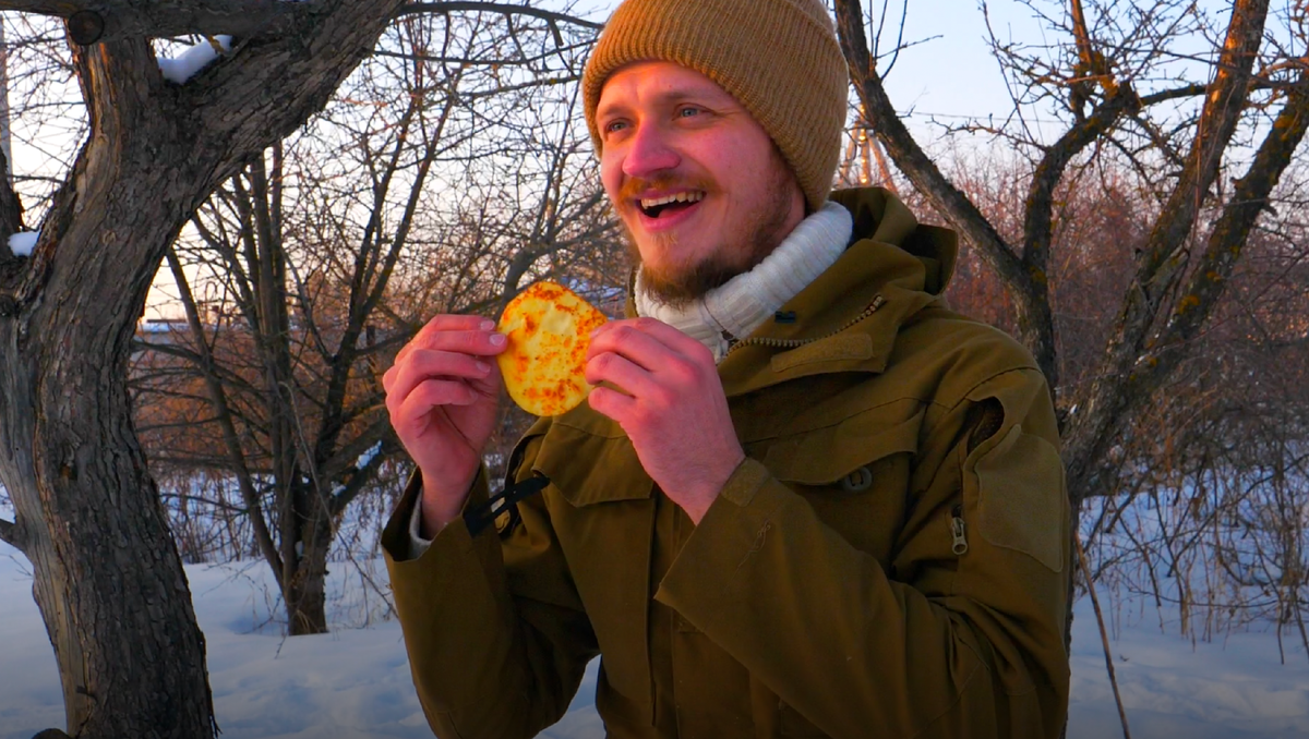 Когда я наконец сел с тарелкой блинчиков и кружкой чая, вокруг стояла такая тишина, что казалось — сам лес затаил дыхание. Аромат сладкого теста, свежий воздух и лёгкий хруст снега под ногами — идеальный момент.