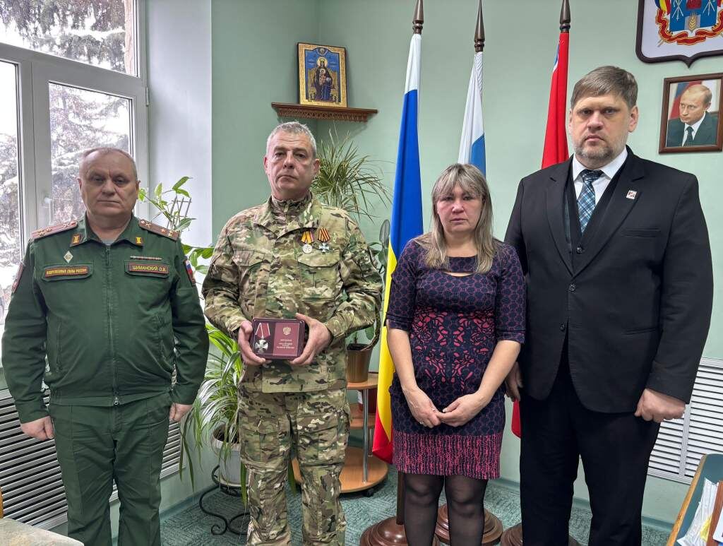 «Есть такая профессия — Родину защищать» — эти слова звучат как призыв к высокому нравственному и гражданскому долгу каждого жителя нашей страны. Проходят века, но в памяти людей навсегда остаются те, кто геройски отстаивал свободу Отчизны. Сегодня мы склоняем голову в память о жителе Багаевского района Кирилле Романовиче Саенко. Он был настоящим патриотом своей Родины. Уроженец поселка Ясный Багаевского района Кирилл служил пулемётчиком в 1-м стрелковом батальоне военной части 71443. Его жизнь оборвалась 21 апреля 2024 года в селе Нетайлово Ясиноватского района Донецкой Народной Республики. Почтить память земляка в Администрацию района пришли родные героя. Глава Администрации Багаевского района Александр Черных обратился к родителям Кирилла. «Самое дорогое богатство нашего района — это люди, которые здесь живут, учатся и трудятся на благо района, области и всей страны. К сожалению, в период спецоперации уходят наши лучшие сыновья, среди которых и Кирилл Романович Саенко. Вашему сыну п