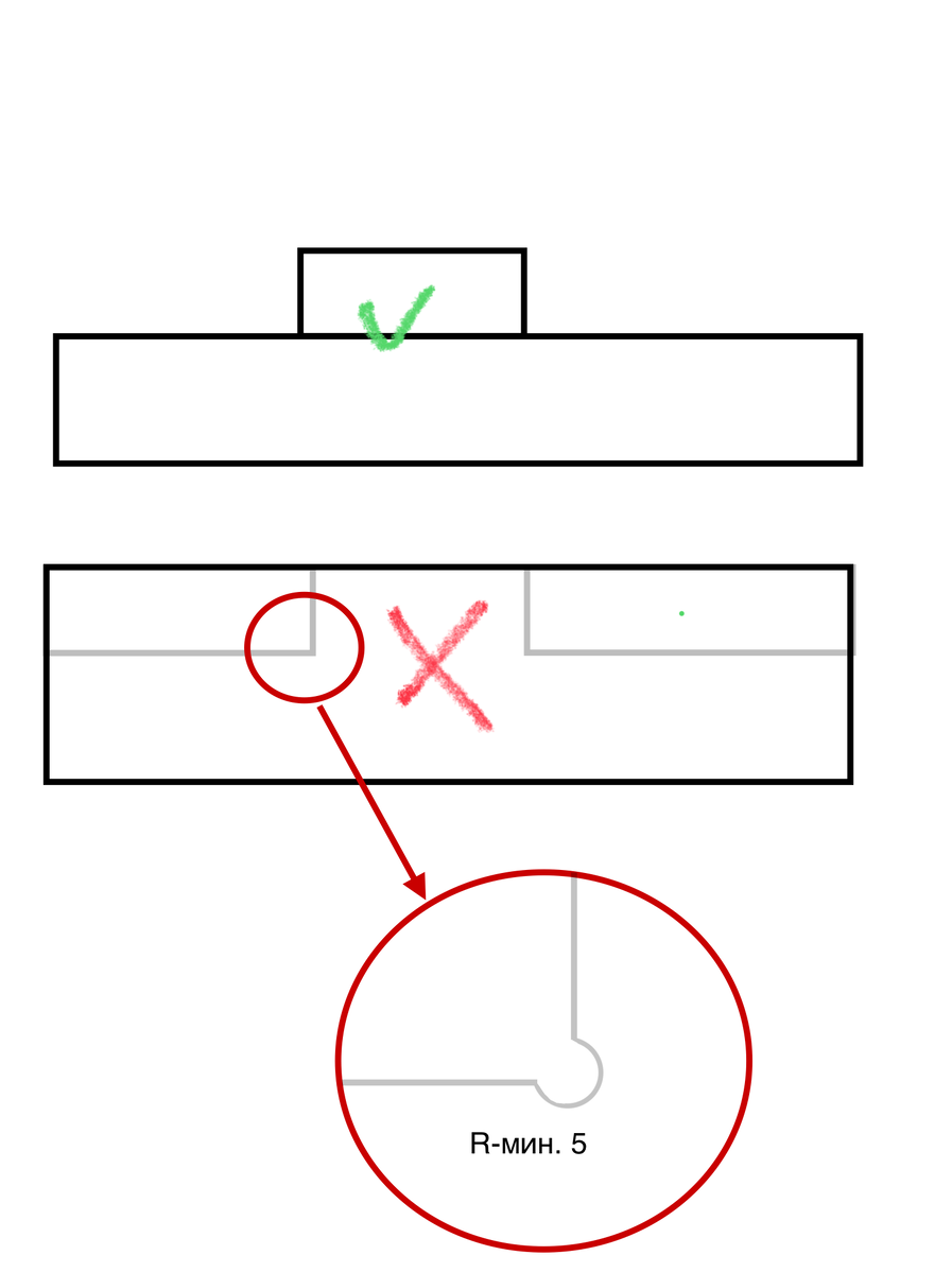 Очередная реставрация трещин в столешнице натолкнула на мысль написать в «Дзен», ведь большинства реставраций и переделок можно было бы избежать, если соблюдать технологии производства и монтажа. Работа с искусственным камнем требует внимания к деталям и понимания физических свойств материала. Однако, когда речь заходит о вырезах в столешнице, особенно при установке подоконников, многие сталкиваются с настоящей головной болью. Задержка установки на несколько часов, а то и дней, становятся привычным делом. Хочу поделиться своими наблюдениями и, возможно, услышать мнения опытных технологов на эту тему. Почему вырезы в столешнице — это проблема? Одна из главных, по моему мнению, ошибок — заказ столешницы увеличенной по глубине с расчетом, что мастер на месте вырежет лишние куски. Это не только увеличивает стоимость, но и создает риски для долговечности конструкции. На внутреннем углу необходимо делать радиусный выпил минимум 5 мм. Если этого не сделать, со временем в этом месте на столеш